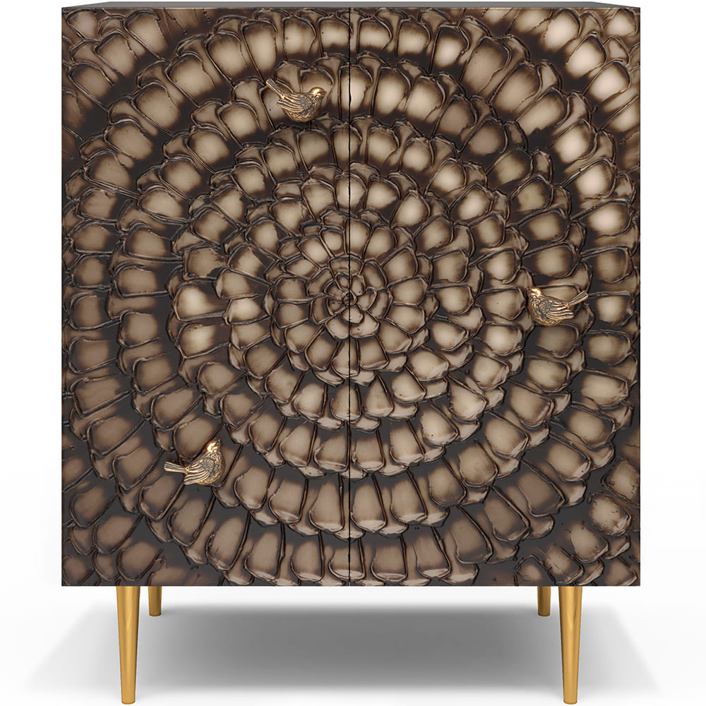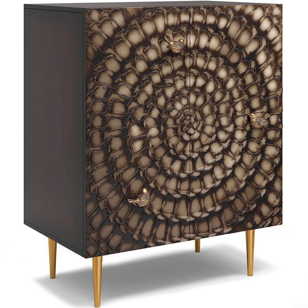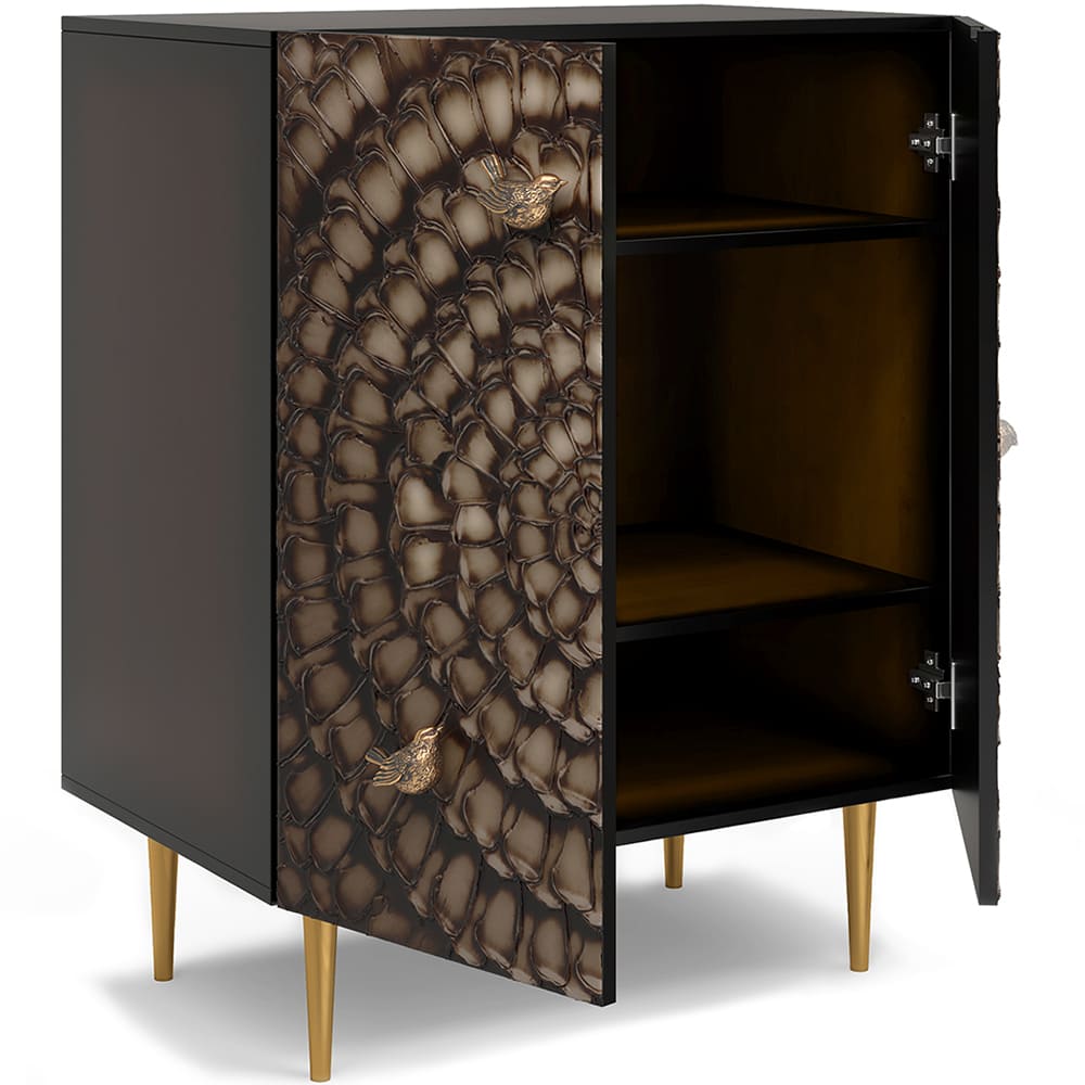Комод из Мдф Терра Классика с распашными дверцами и двумя регулируемыми полками. Комод совершенно нового формата из коллекции Терра позволяет преобразить дизайн и заполнить пространство природным шармом. Мебель Терра - это гармония в каждой детали. Конические ножки прочно держат классическую форму изделия и добавляют изысканности интерьеру вашего дома. Комод изготавливается из Мдф. Декоративные элементы выполняются в технике мастихиновой живописи из натурального коелгинского мрамора мелкой фракции. Птички изготовлены из литьевого мрамора. Изделие приходит в собранном виде за исключением ножек.