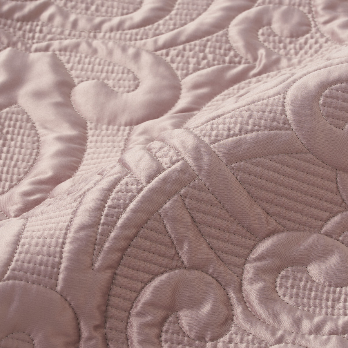 Стеганое покрывало и подушки выглядят красиво и элегантно благодаря флористическому орнаменту.