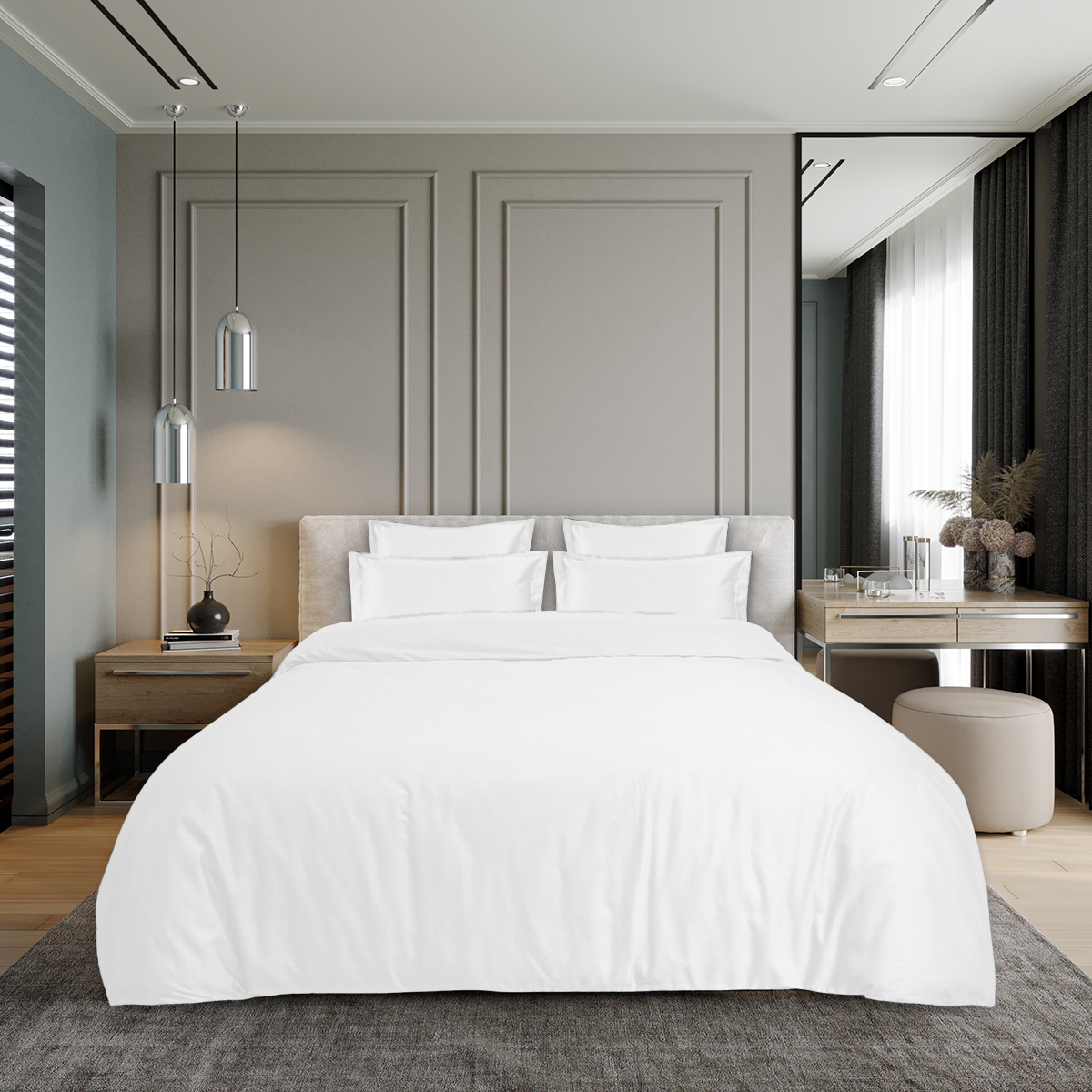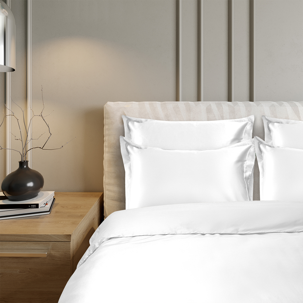 Комплект наволочек выполнен в белом цвете. Белый цвет добавляет изысканности и гармонии интерьеру спальни и располагает к безмятежному отдыху.