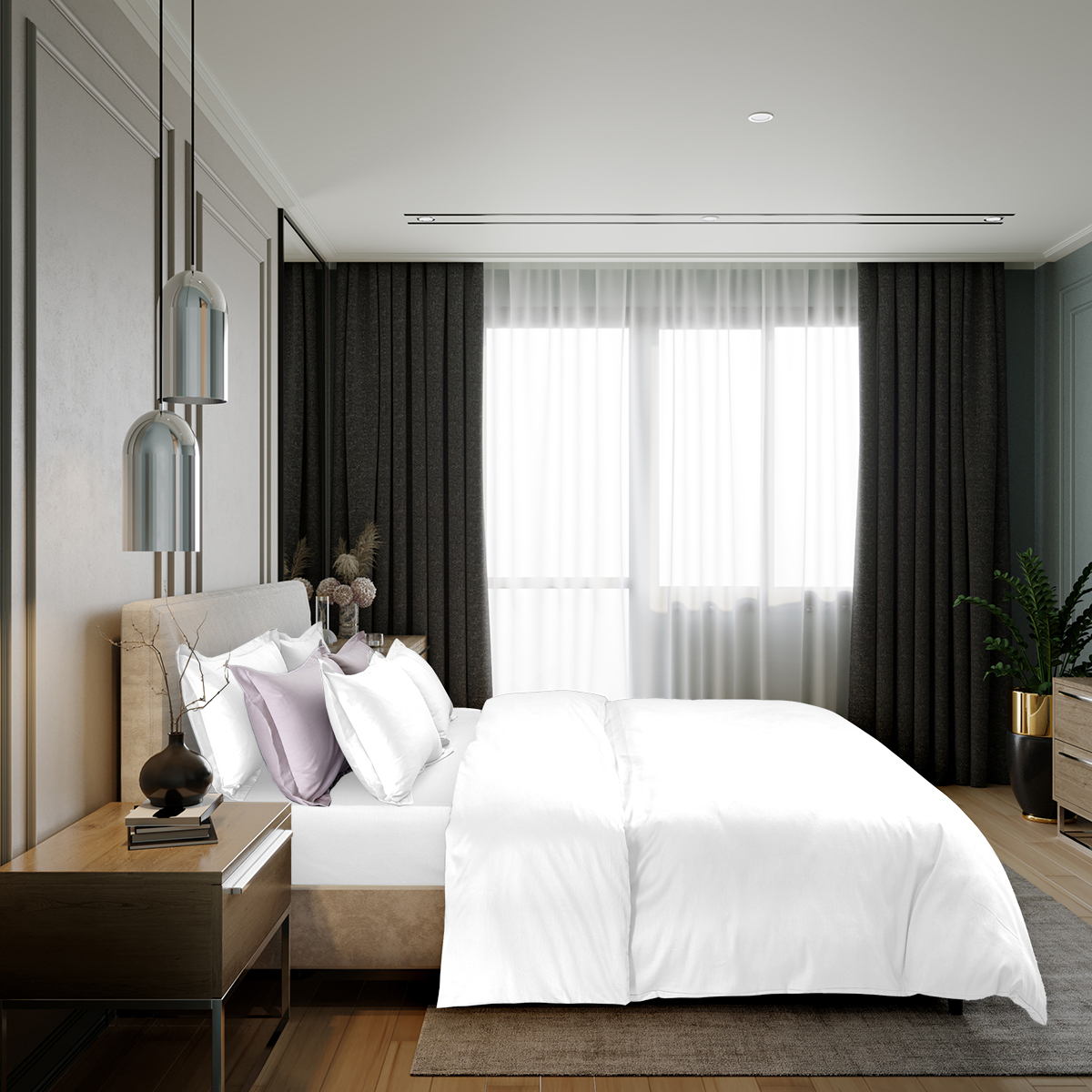 Комплект наволочек выполнен в белом цвете. Белый цвет добавляет изысканности и гармонии интерьеру спальни и располагает к безмятежному отдыху.