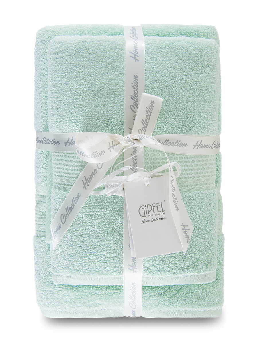 Комплект полотенец Gipfel SUAVE 47104. В наборе 2 полотенца мятного цвета с кружевной отделкой размером 50x100 см, 70x140 см. Полотенца состоят из 100% хлопка, плотность нити 550 гр/м2. Махровые полотенца невероятно мягкие и сделаны из натурального материала. Разные размеры позволяют использовать полотенца для рук, лица или после душа.
