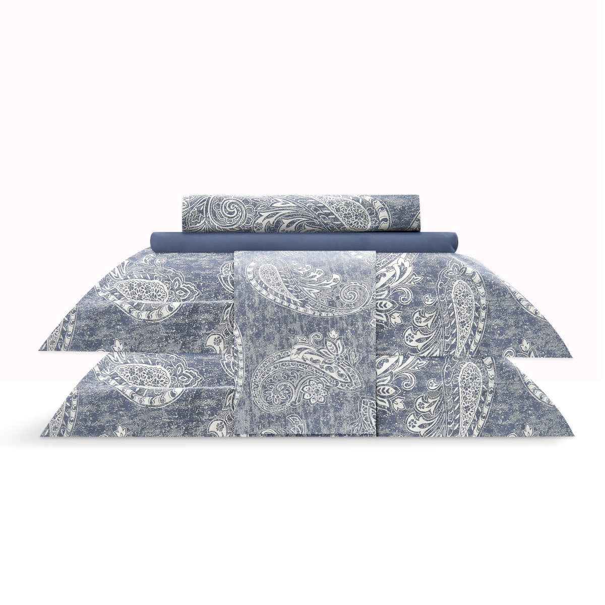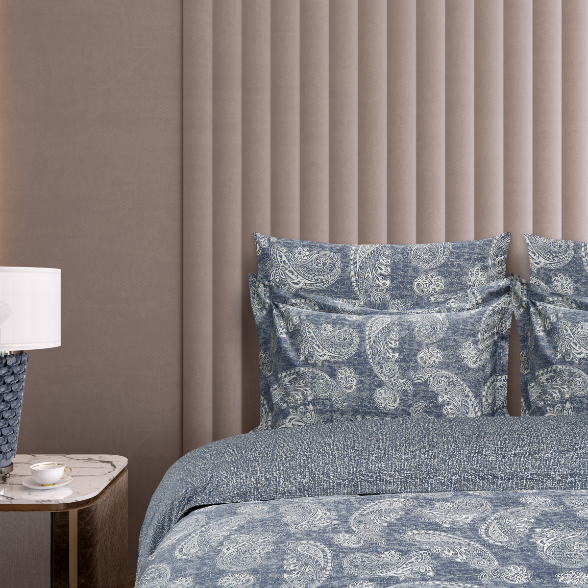Комплект постельного белья Gipfel Ethereal выполнен в сумеречно-синем оттенке с декоративным орнаментом Пейсли цвета айвори. Сочетание этих цветов добавляет изысканности и гармонии интерьеру спальни и располагает к безмятежному отдыху.