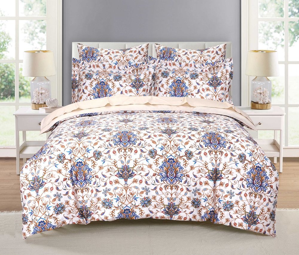 Комплект MARICO выполнен в восточном стиле с орнаментом из пышных соцветий, соединенных, как арабской вязью, бесконечным переплетением стеблей, завитков и листьев. Такой узор придется по вкусу любителям ярких и броских элементов декора, оформленных с помпезностью и роскошью.