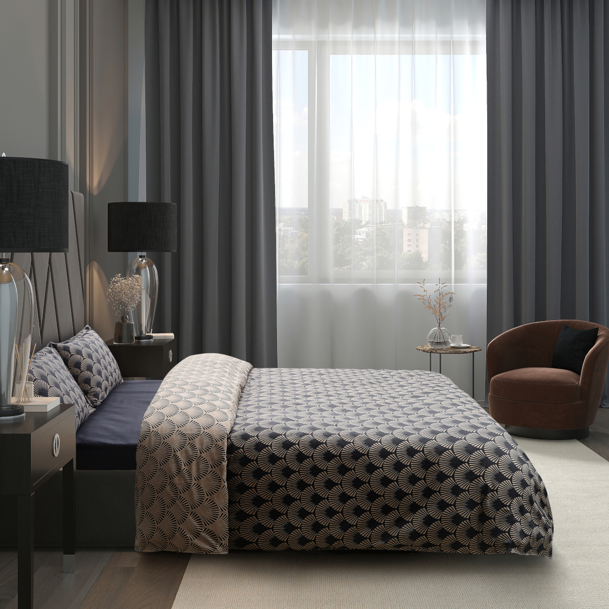 Комплект постельного белья Gipfel Gabriel выполнен в графитовом оттенке с этническим орнаментом бежевого цвета. Сочетание этих цветов добавляет изысканности и гармонии интерьеру спальни и располагает к безмятежному отдыху.