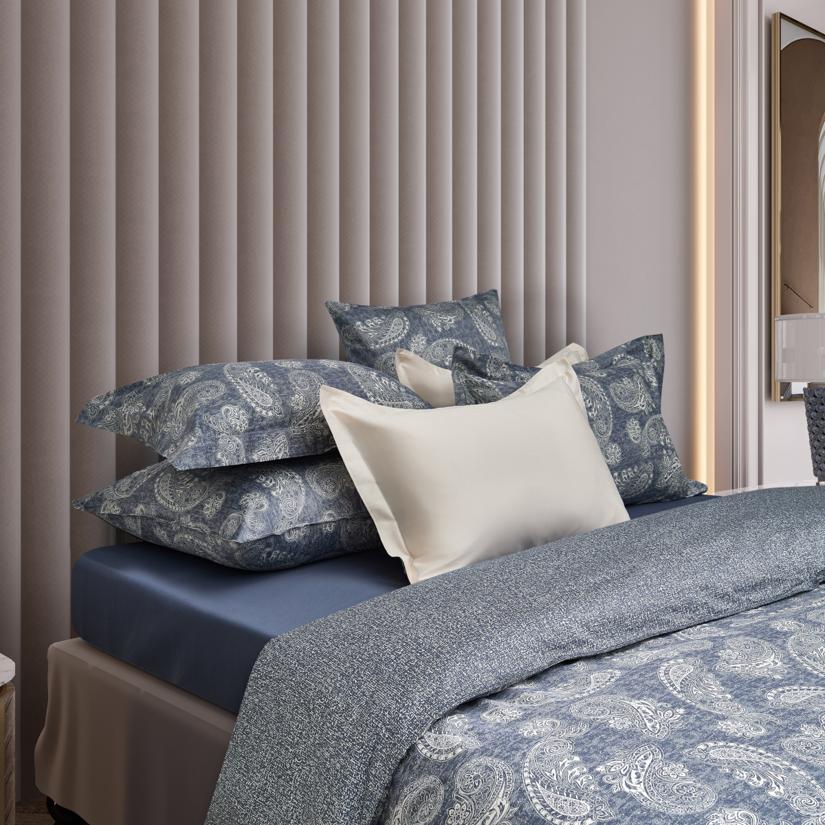 Комплект постельного белья Gipfel Ethereal выполнен в сумеречно-синем оттенке с декоративным орнаментом Пейсли цвета айвори. Сочетание этих цветов добавляет изысканности и гармонии интерьеру спальни и располагает к безмятежному отдыху.