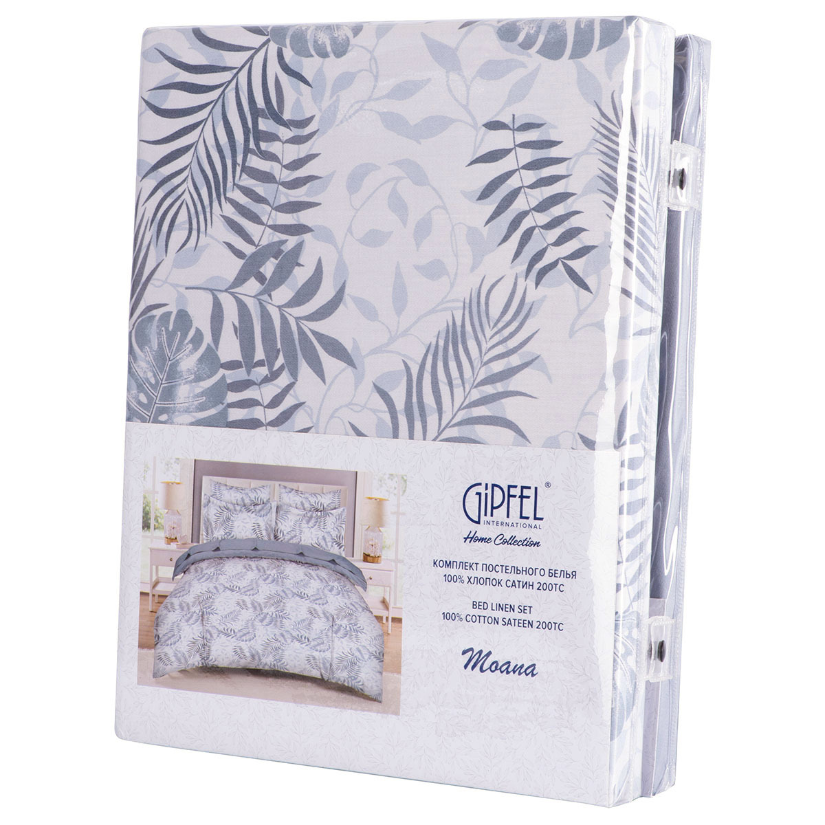 Комплект постельного белья полуторный Gipfel Moana 42373. Состав: 100% хлопок, плотность ткани 200TC. Размер: пододеяльник 150x210см, простыня 180x220см, 2 наволочки 50x70см. Цвет: белый с голубым.