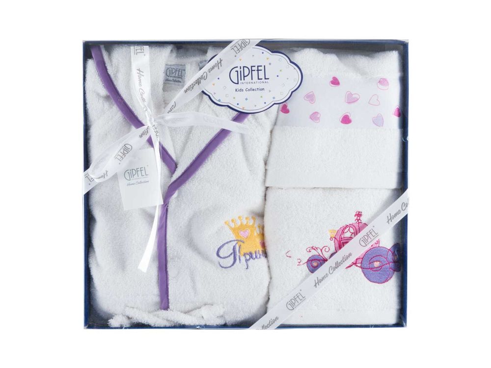 Комплект Gipfel PRINCESS 41235. В комплект входят 2 белых полотенца и халат из 100% хлопка. Комплект с вышитыми каретой и короной станет прекрасным подарком для девочки. Халат подойдет для детей 6-8 лет, полотенца размером 50х90 см. Махровые полотенца невероятно мягкие и сделаны из натурального материала, они гипоаллергенны и прекрасно впитывают влагу. В халат можно уютно завернуться после душа.