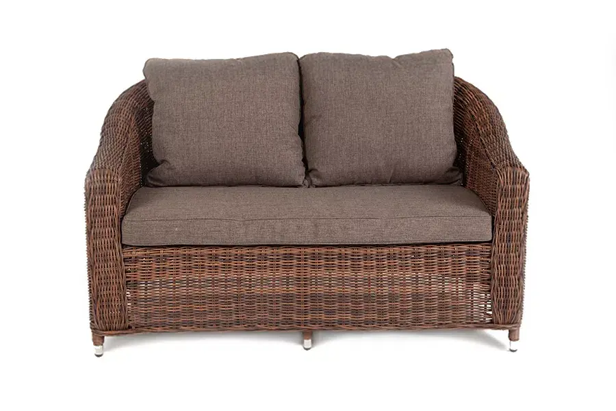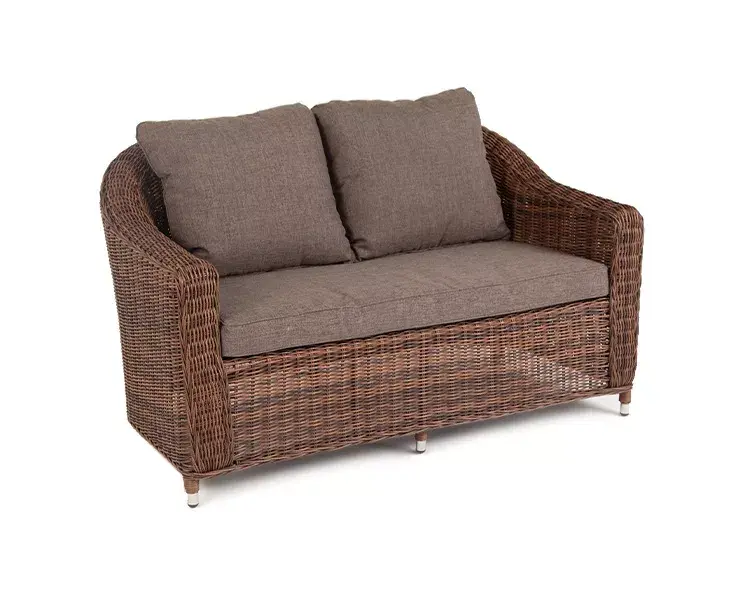 Двухместный диван «Кон Панна» с закругленной спинкой, переходящей в подлокотники. Изготовлен на основе алюминиевого каркаса.