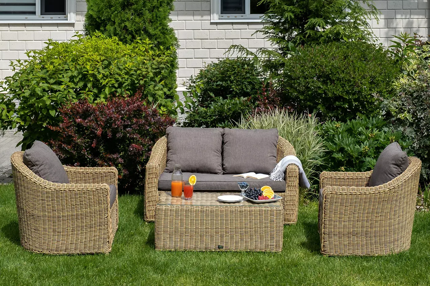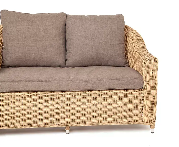 При производстве садового дивана был использован прочный алюминиевый каркас, который оплетен вручную искусственным ротангом.