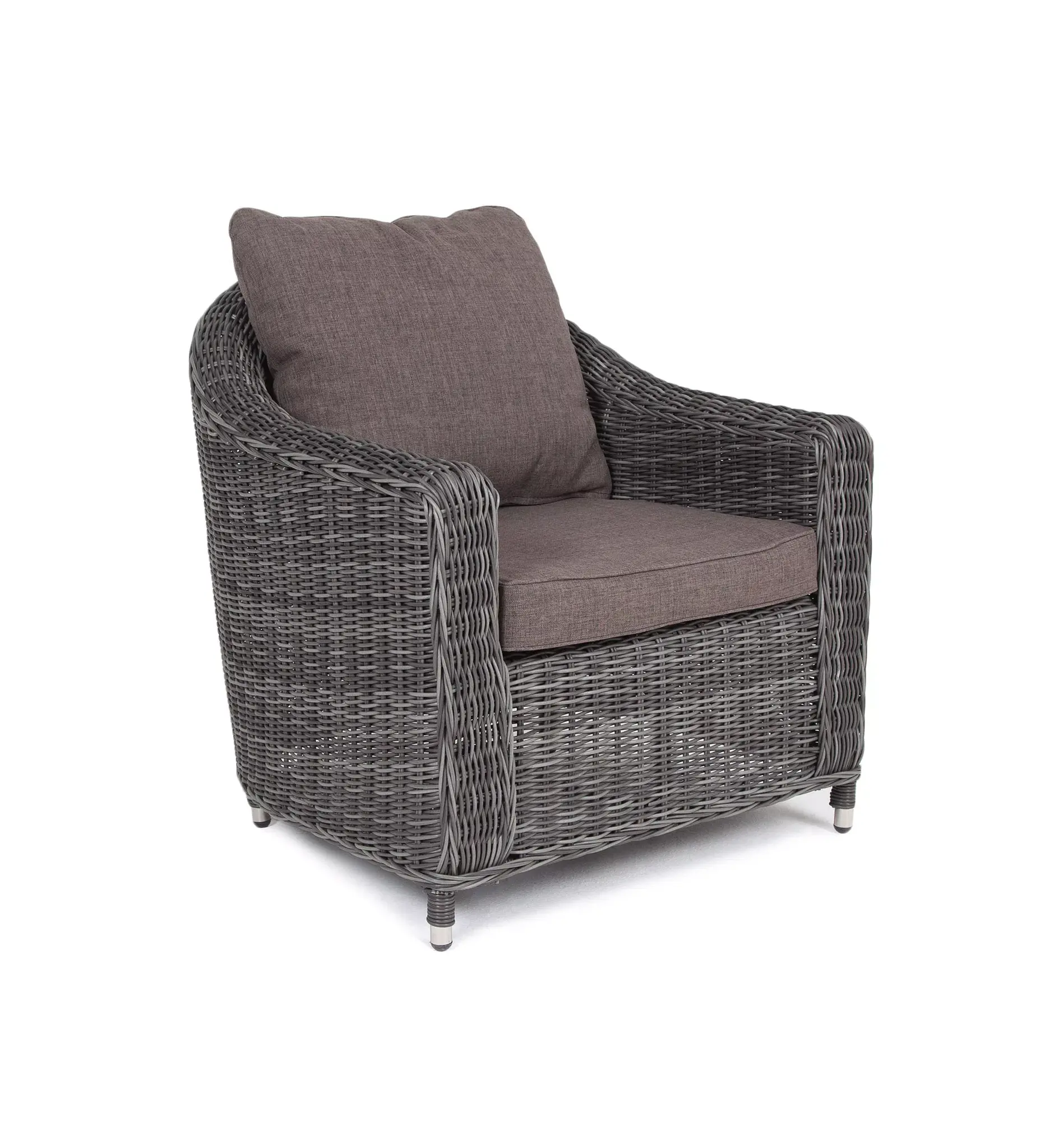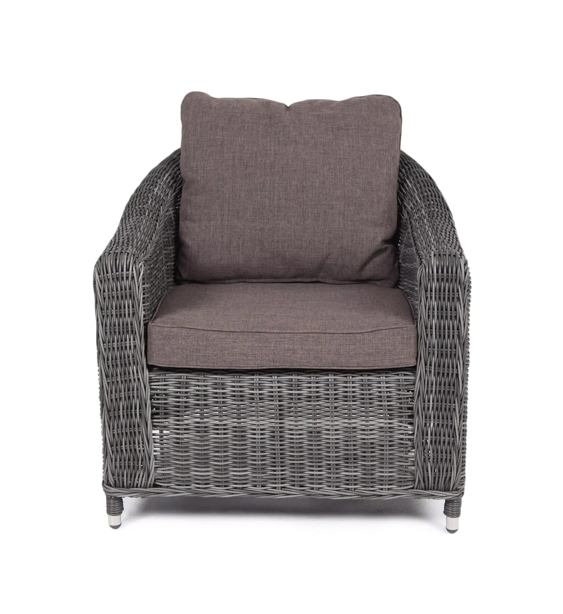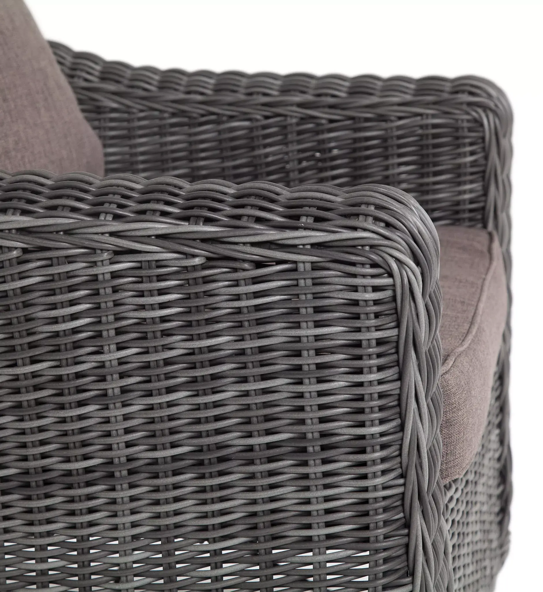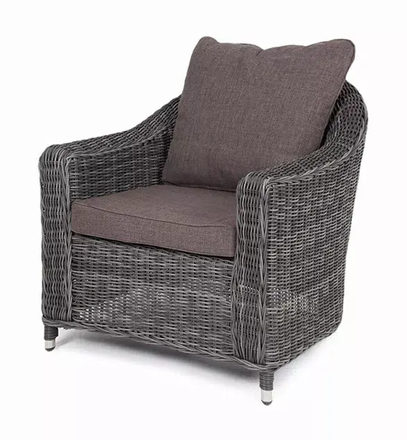 У кресла есть мягкие подушки, выполненые в серо-коричневом цвете. Они сделаны из прочного полиэстера с плотностью 230гр/м2. Ткань имеет влагоотталкивающую пропитку, которая защищает ее от сильного намокания.