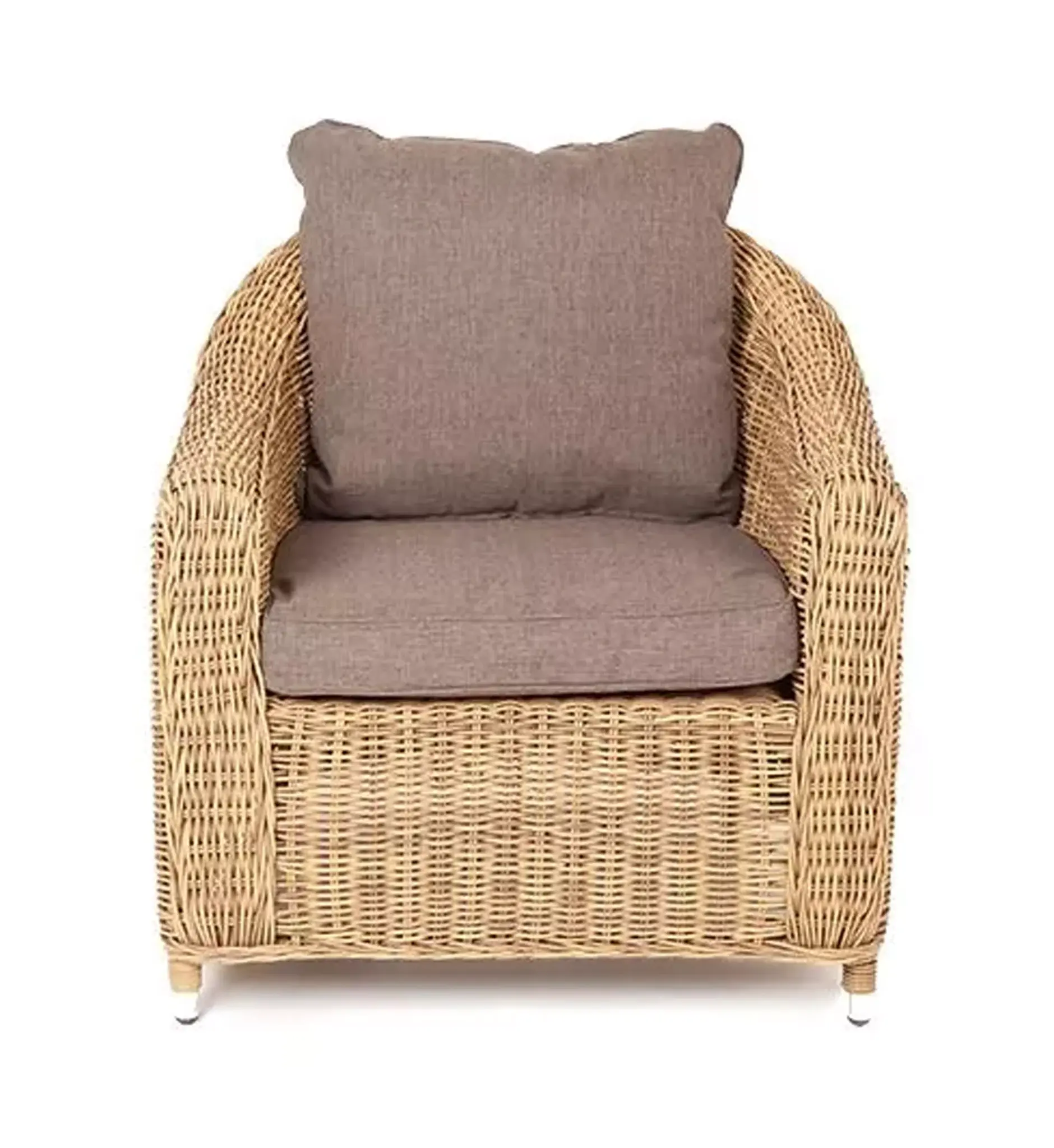 Кресло из круглого искусственного ротанга «Кон Панна» имеет компактные размеры 800×800×800 мм.