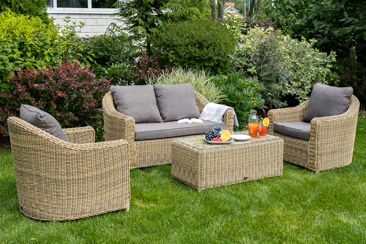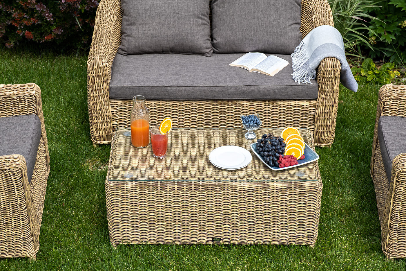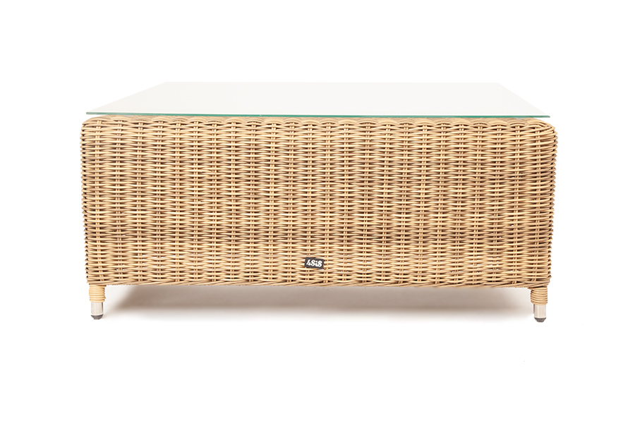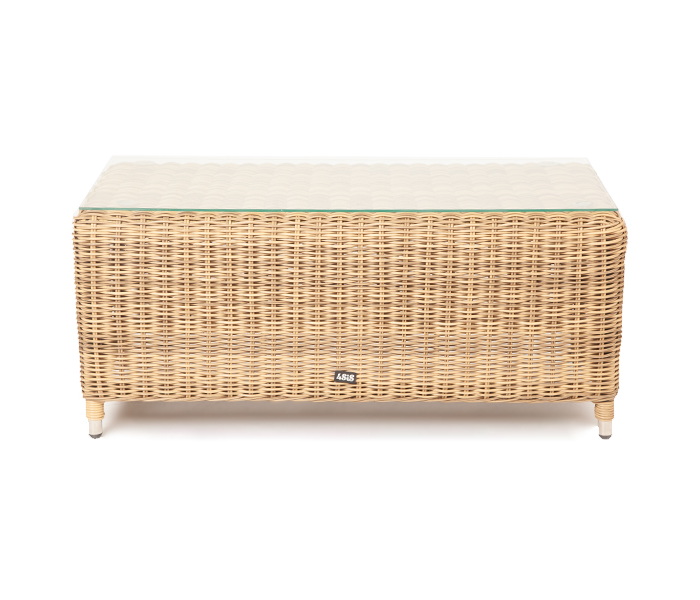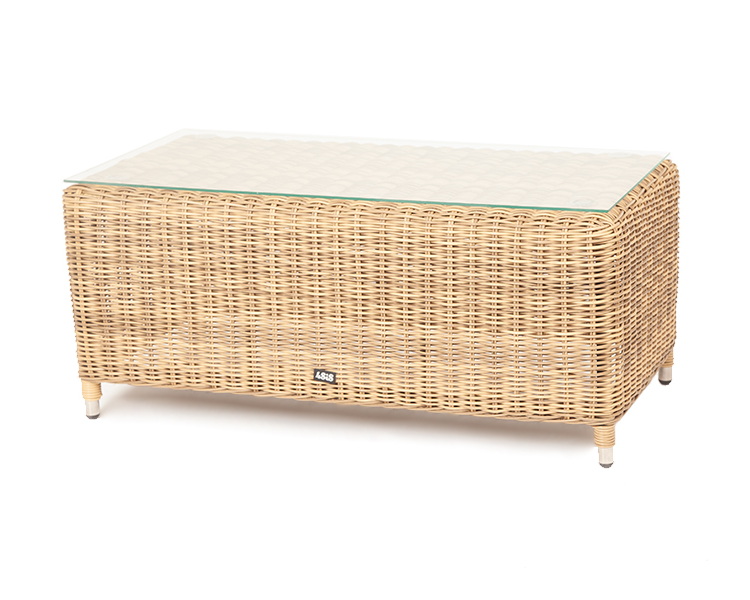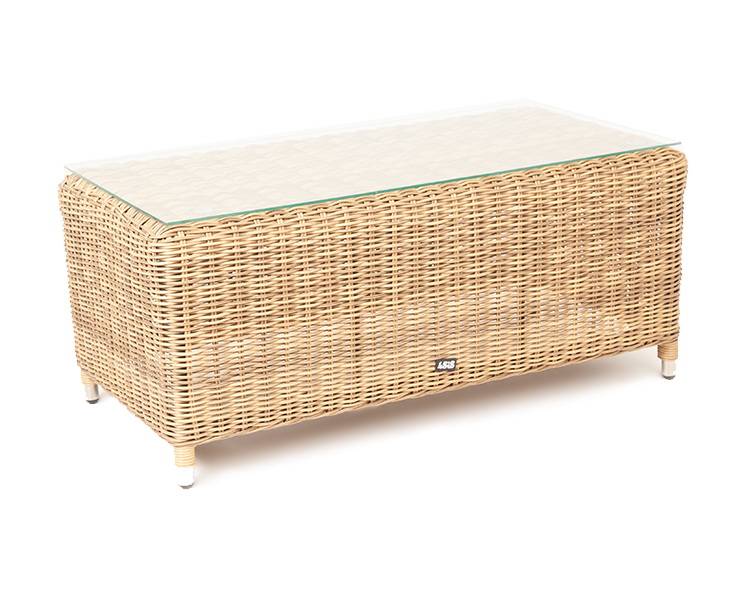 Журнальный столик из круглого искусственного ротанга «Кон Панна» соломенного цвета, подходит для эксплуатации при различных погодных условиях.