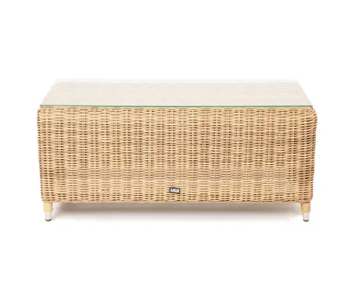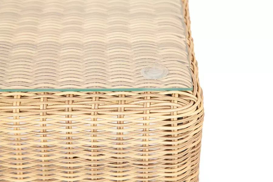 Журнальный столик из круглого искусственного ротанга «Кон Панна» соломенного цвета, подходит для эксплуатации при различных погодных условиях.