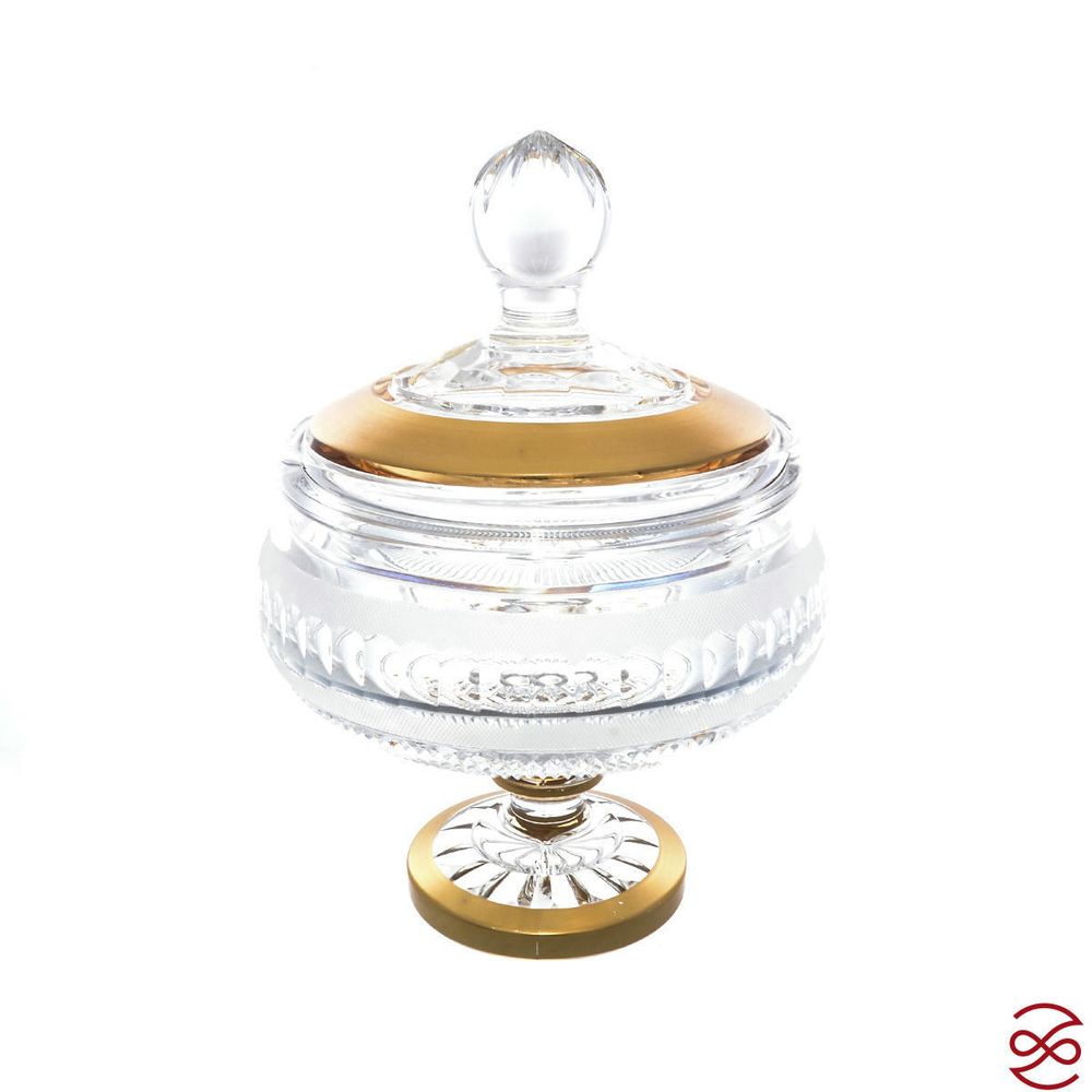 Конфетница с крышкой на ножке хрусталь с золотом Crystal Heart 16 см