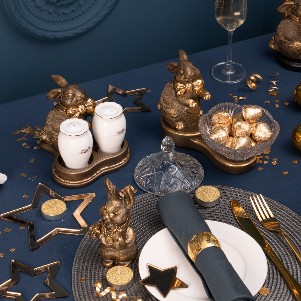 Конфетница-сахарница Кролик Банни Бронза с чашей