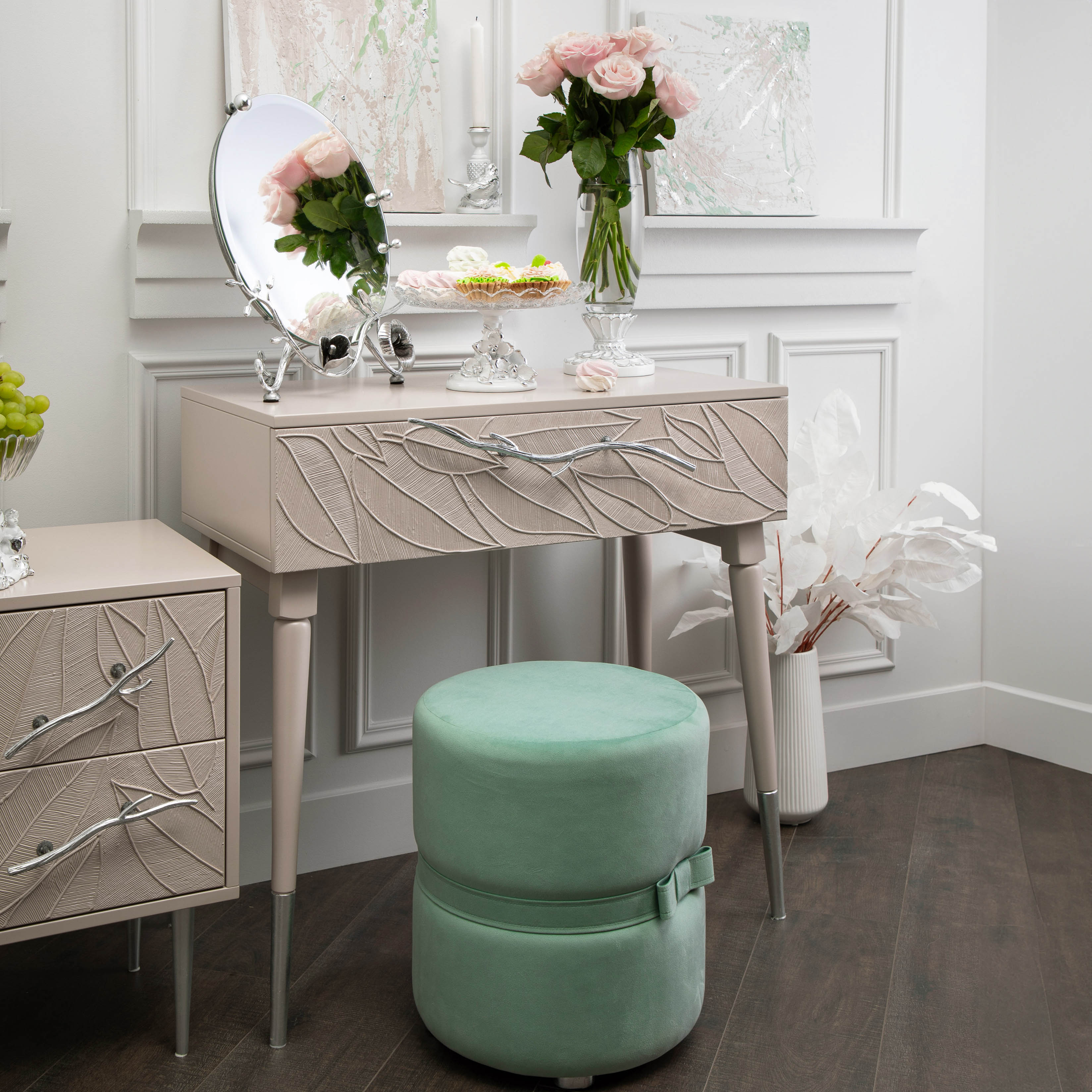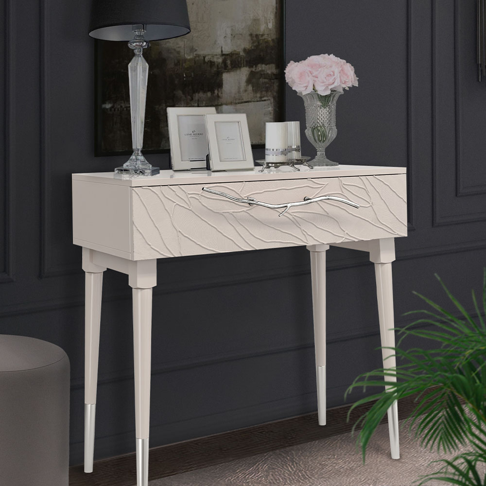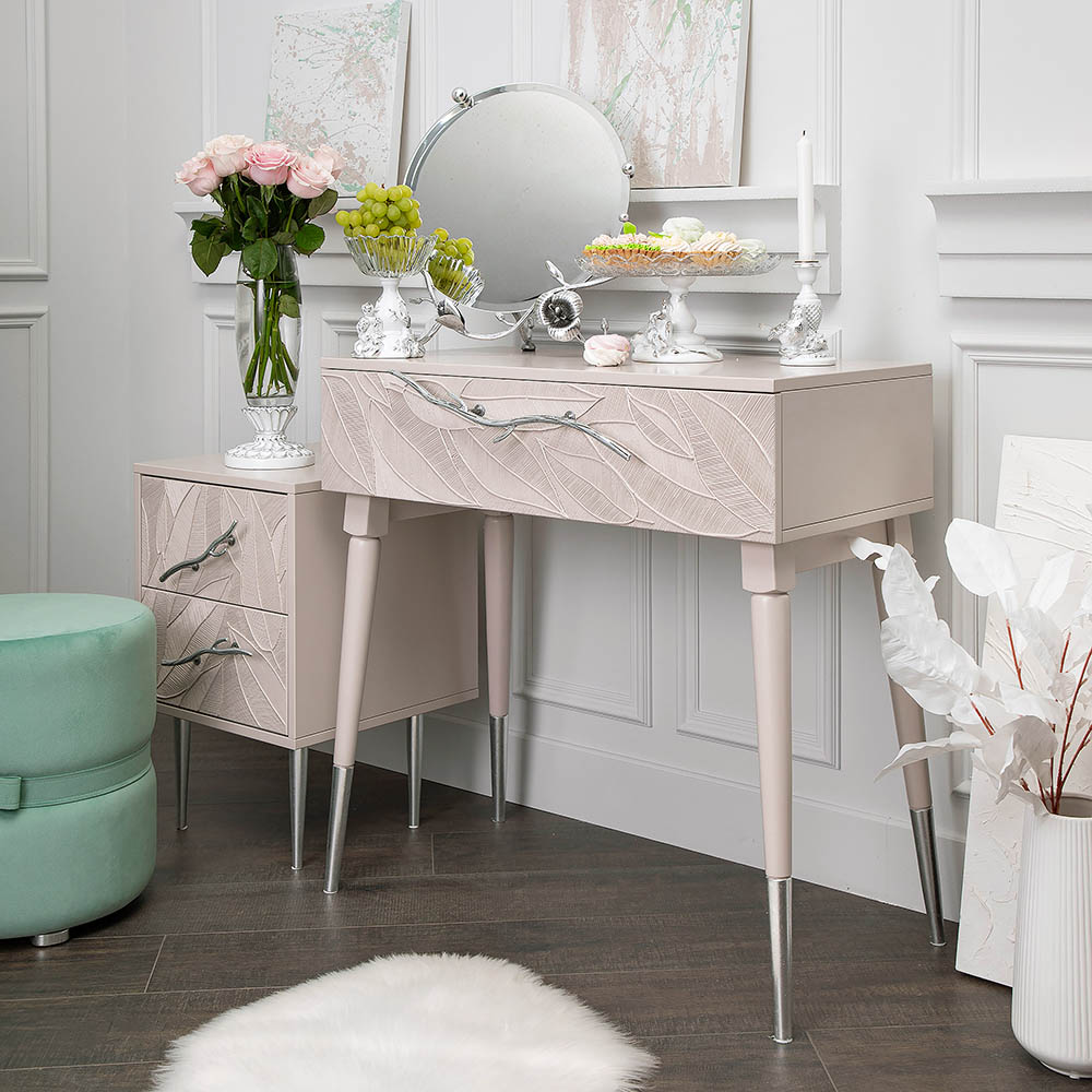 ФункциональностьТуалетный стол с ящиком. А это значит, что вы сможете использовать ее как систему хранения вещей и документов, косметики (стол для макияжа, гримерный) или она подойдет как тумба под телевизор. Вместительный ящик незаменим для того, чтобы наполнить его тем, что должно быть всегда под рукой, в легком доступе. Дополнив его зеркалом, вы устроите себе идеальное место для нанесения ежедневного макияжа и ритуалов красоты. Мебель подойдет как тумба в спальню для девочек, тумба под Тв.