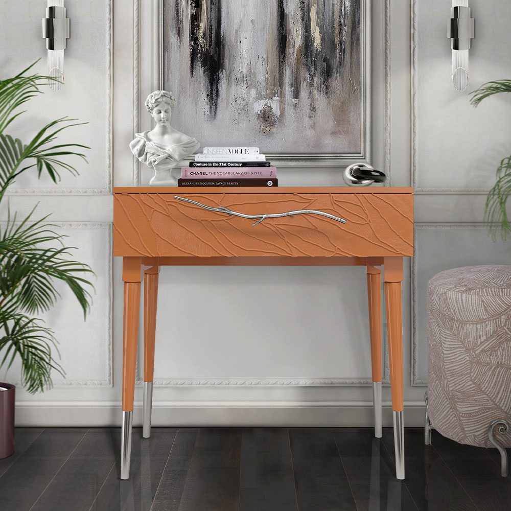 Консоль Арт Колор leaves Стайл Сильвер Томленый оранжевый