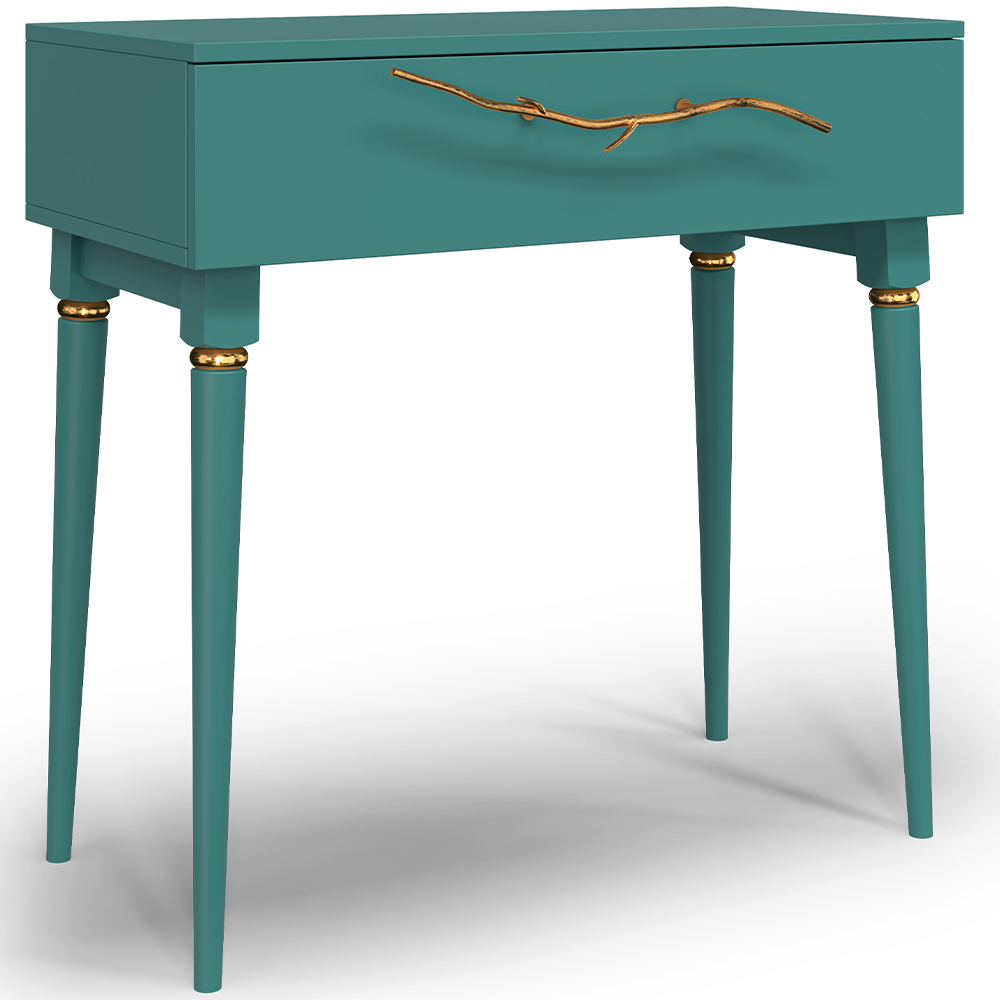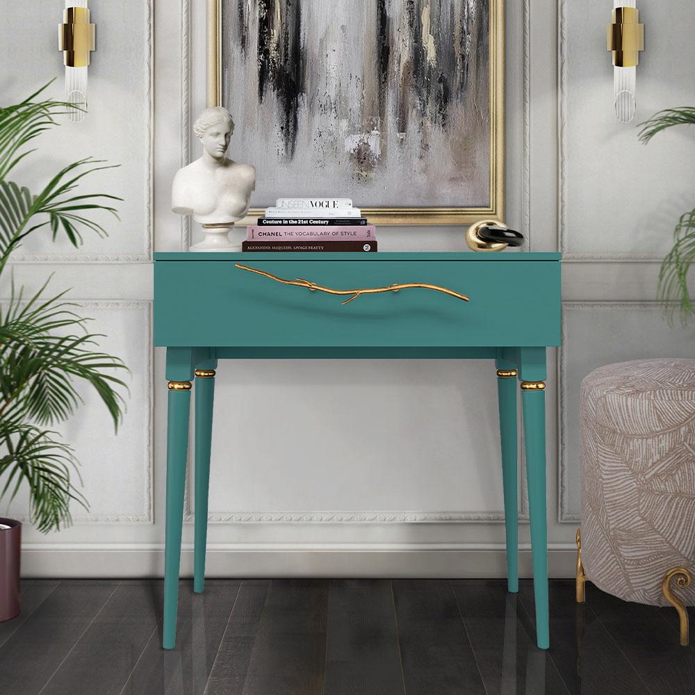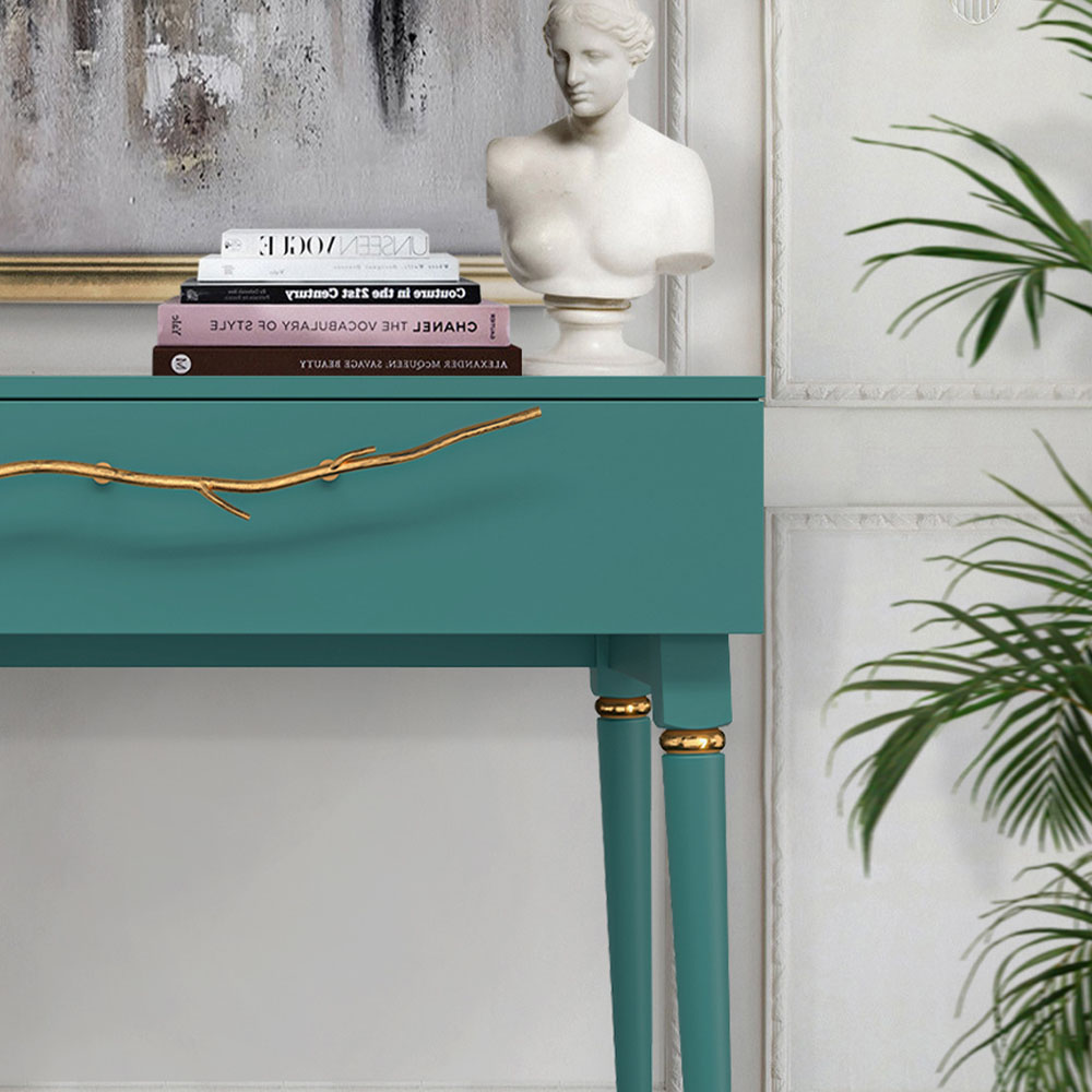 Консольный столик Арт-классик – от российской фабрики мебели BOGACHO, эффектный предмет интерьера, который позволит создать в вашем доме изысканную обстановку. Консоль можно разместить в любой комнате дома, она гармонично будет смотреться в классическом интерьере, лофт, скандинавский стиль Икеа. Эстетика и оригинальный дизайнОбладая оригинальным авторским дизайном, прикроватный столик выделяется оригинальным фасадом. Изюминка изделия – шикарная кованая ручка в форме ветви дерева – ручная работа кузнеца. За изящную ручку удобно открывать и закрывать выдвижной ящик консольного столика. Фасад украшен тропическими листьями из мраморной пудры в технике мастихиновой живописи.Модель мебели в спальню снабжена качественной фурнитурой, которая обеспечивает плавный ход выдвижного механизма на долгие годы. Материалом изготовления изделия служит Мдф. Декоративные элементы отлиты из коелгинского мрамора, отшлифованы, а затем позолочены вручную. ФункциональностьТуалетный стол с ящиком. А это значит, что вы сможете использовать ее как систему хранения вещей и документов, косметики (стол для макияжа, гримерный) или она подойдет как тумба под телевизор. Вместительный ящик незаменим для того, чтобы наполнить его тем, что должно быть всегда под рукой, в легком доступе. Дополнив его зеркалом, вы устроите себе идеальное место для нанесения ежедневного макияжа и ритуалов красоты. Мебель подойдет как тумба в спальню для девочек, тумба под Тв. КомпактностьКосметический стол может быть установлен в любом удобном для вас месте. Трюмо женское не отнимает пространства, напротив, экономит его, выглядит очень красиво, современно и стильно. Используйте его как мебель в спальню, туалетный столик с зеркалом – за ним удобно сидеть, и он не занимает много места, при этом позволит хранить в ящике все нужные принадлежности. Используйте как мебель для гостиной, на нем удобно расположить ноутбук, светильник или декор.Можно купить тумбу для гостиниц, отелей, загородных домов, коттеджей. Она украсит интерьер и станет незаменимой мебелью для полной комплектации как квартир, так и номеров. Практичность и простота уходаКонсоль в прихожую изготовлена из высококачественного Мдф. Покрытие износостойкое, не требует особого ухода. Достаточно протереть поверхность слегка влажной тряпочкой. Ручка выполнена из кованой стали. Единый стильЛюбите, чтобы интерьер был в едином стиле? Присмотритесь к другой мебели фабрики BOGACHO из коллекции Арт, которая будет гармонично сочетаться друг с другом.