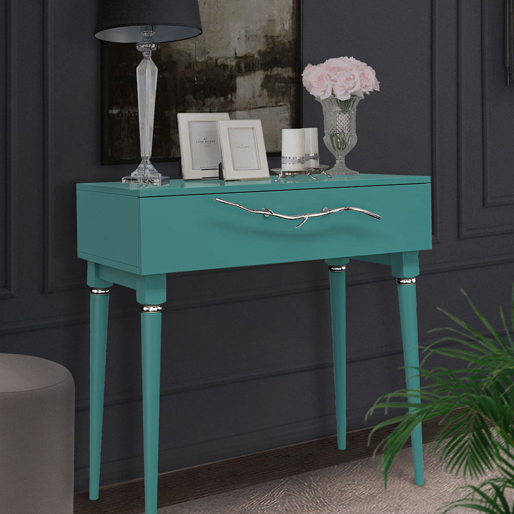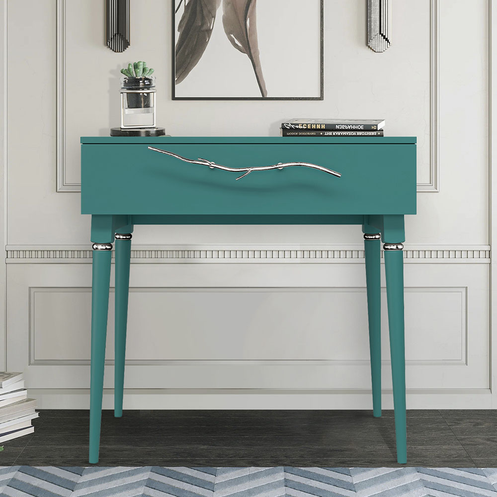 Консольный столик Арт-классик – от российской фабрики мебели BOGACHO, эффектный предмет интерьера, который позволит создать в вашем доме изысканную обстановку. Консоль можно разместить в любой комнате дома, она гармонично будет смотреться в классическом интерьере, лофт, скандинавский стиль Икеа. Эстетика и оригинальный дизайнОбладая оригинальным авторским дизайном, прикроватный столик выделяется оригинальным фасадом. Изюминка изделия – шикарная кованая ручка в форме ветви дерева – ручная работа кузнеца. За изящную ручку удобно открывать и закрывать выдвижной ящик консольного столика. Фасад украшен тропическими листьями из мраморной пудры в технике мастихиновой живописи.Модель мебели в спальню снабжена качественной фурнитурой, которая обеспечивает плавный ход выдвижного механизма на долгие годы. Материалом изготовления изделия служит Мдф. Декоративные элементы отлиты из коелгинского мрамора, отшлифованы, а затем позолочены вручную. ФункциональностьТуалетный стол с ящиком. А это значит, что вы сможете использовать ее как систему хранения вещей и документов, косметики (стол для макияжа, гримерный) или она подойдет как тумба под телевизор. Вместительный ящик незаменим для того, чтобы наполнить его тем, что должно быть всегда под рукой, в легком доступе. Дополнив его зеркалом, вы устроите себе идеальное место для нанесения ежедневного макияжа и ритуалов красоты. Мебель подойдет как тумба в спальню для девочек, тумба под Тв. КомпактностьКосметический стол может быть установлен в любом удобном для вас месте. Трюмо женское не отнимает пространства, напротив, экономит его, выглядит очень красиво, современно и стильно. Используйте его как мебель в спальню, туалетный столик с зеркалом – за ним удобно сидеть, и он не занимает много места, при этом позволит хранить в ящике все нужные принадлежности. Используйте как мебель для гостиной, на нем удобно расположить ноутбук, светильник или декор.Можно купить тумбу для гостиниц, отелей, загородных домов, коттеджей. Она украсит интерьер и станет незаменимой мебелью для полной комплектации как квартир, так и номеров. Практичность и простота уходаКонсоль в прихожую изготовлена из высококачественного Мдф. Покрытие износостойкое, не требует особого ухода. Достаточно протереть поверхность слегка влажной тряпочкой. Ручка выполнена из кованой стали. Единый стильЛюбите, чтобы интерьер был в едином стиле? Присмотритесь к другой мебели фабрики BOGACHO из коллекции Арт, которая будет гармонично сочетаться друг с другом.
