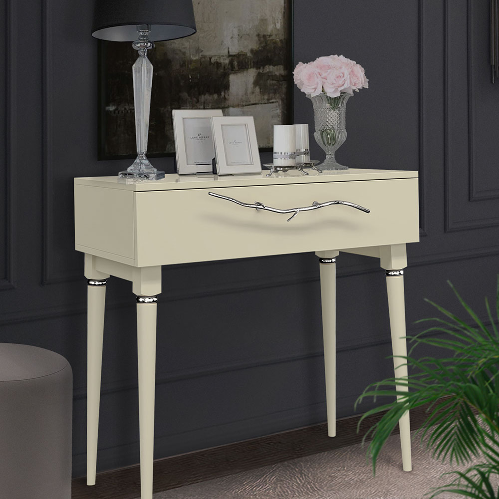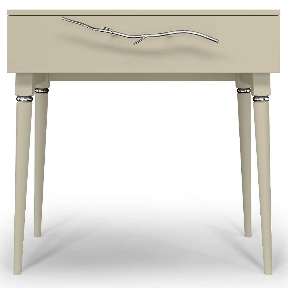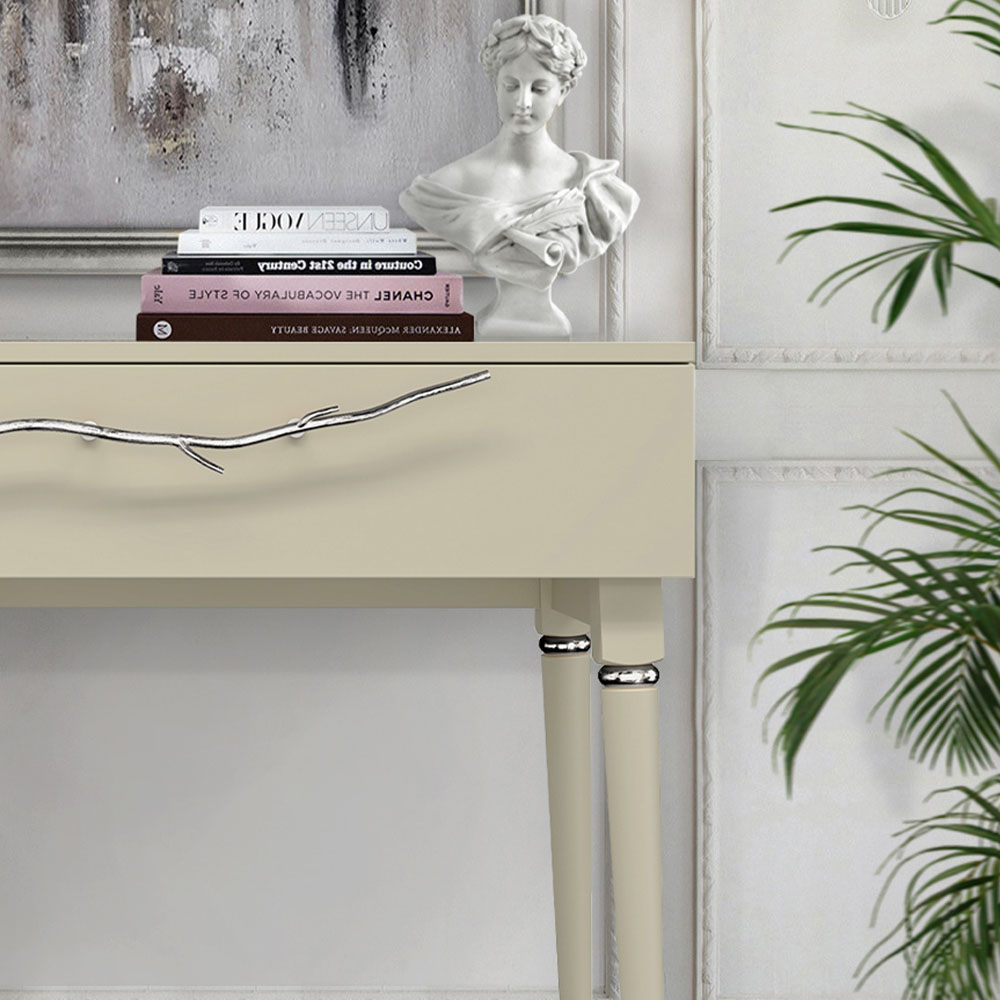 Консольный столик Арт-классик – от российской фабрики мебели BOGACHO, эффектный предмет интерьера, который позволит создать в вашем доме изысканную обстановку. Консоль можно разместить в любой комнате дома, она гармонично будет смотреться в классическом интерьере, лофт, скандинавский стиль Икеа. Эстетика и оригинальный дизайнОбладая оригинальным авторским дизайном, прикроватный столик выделяется оригинальным фасадом. Изюминка изделия – шикарная кованая ручка в форме ветви дерева – ручная работа кузнеца. За изящную ручку удобно открывать и закрывать выдвижной ящик консольного столика. Фасад украшен тропическими листьями из мраморной пудры в технике мастихиновой живописи.Модель мебели в спальню снабжена качественной фурнитурой, которая обеспечивает плавный ход выдвижного механизма на долгие годы. Материалом изготовления изделия служит Мдф. Декоративные элементы отлиты из коелгинского мрамора, отшлифованы, а затем позолочены вручную. ФункциональностьТуалетный стол с ящиком. А это значит, что вы сможете использовать ее как систему хранения вещей и документов, косметики (стол для макияжа, гримерный) или она подойдет как тумба под телевизор. Вместительный ящик незаменим для того, чтобы наполнить его тем, что должно быть всегда под рукой, в легком доступе. Дополнив его зеркалом, вы устроите себе идеальное место для нанесения ежедневного макияжа и ритуалов красоты. Мебель подойдет как тумба в спальню для девочек, тумба под Тв. КомпактностьКосметический стол может быть установлен в любом удобном для вас месте. Трюмо женское не отнимает пространства, напротив, экономит его, выглядит очень красиво, современно и стильно. Используйте его как мебель в спальню, туалетный столик с зеркалом – за ним удобно сидеть, и он не занимает много места, при этом позволит хранить в ящике все нужные принадлежности. Используйте как мебель для гостиной, на нем удобно расположить ноутбук, светильник или декор.Можно купить тумбу для гостиниц, отелей, загородных домов, коттеджей. Она украсит интерьер и станет незаменимой мебелью для полной комплектации как квартир, так и номеров. Практичность и простота уходаКонсоль в прихожую изготовлена из высококачественного Мдф. Покрытие износостойкое, не требует особого ухода. Достаточно протереть поверхность слегка влажной тряпочкой. Ручка выполнена из кованой стали. Единый стильЛюбите, чтобы интерьер был в едином стиле? Присмотритесь к другой мебели фабрики BOGACHO из коллекции Арт, которая будет гармонично сочетаться друг с другом.