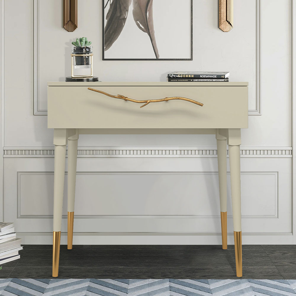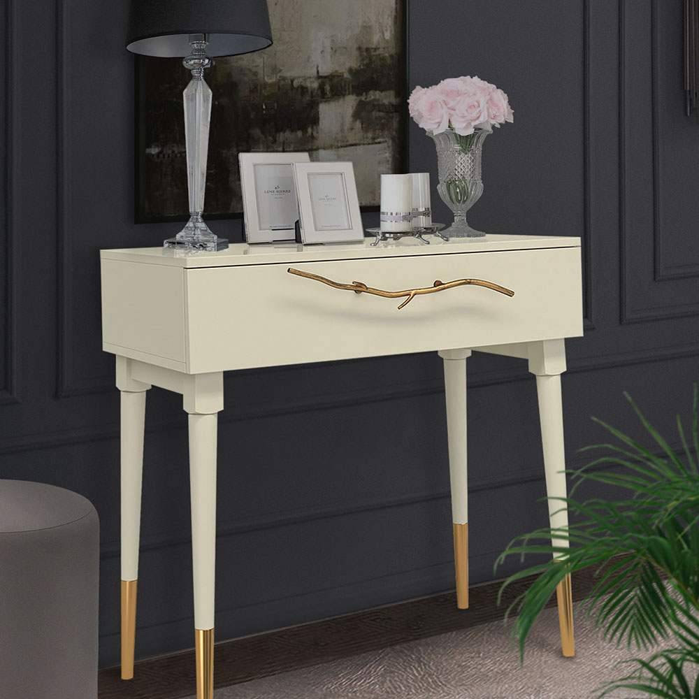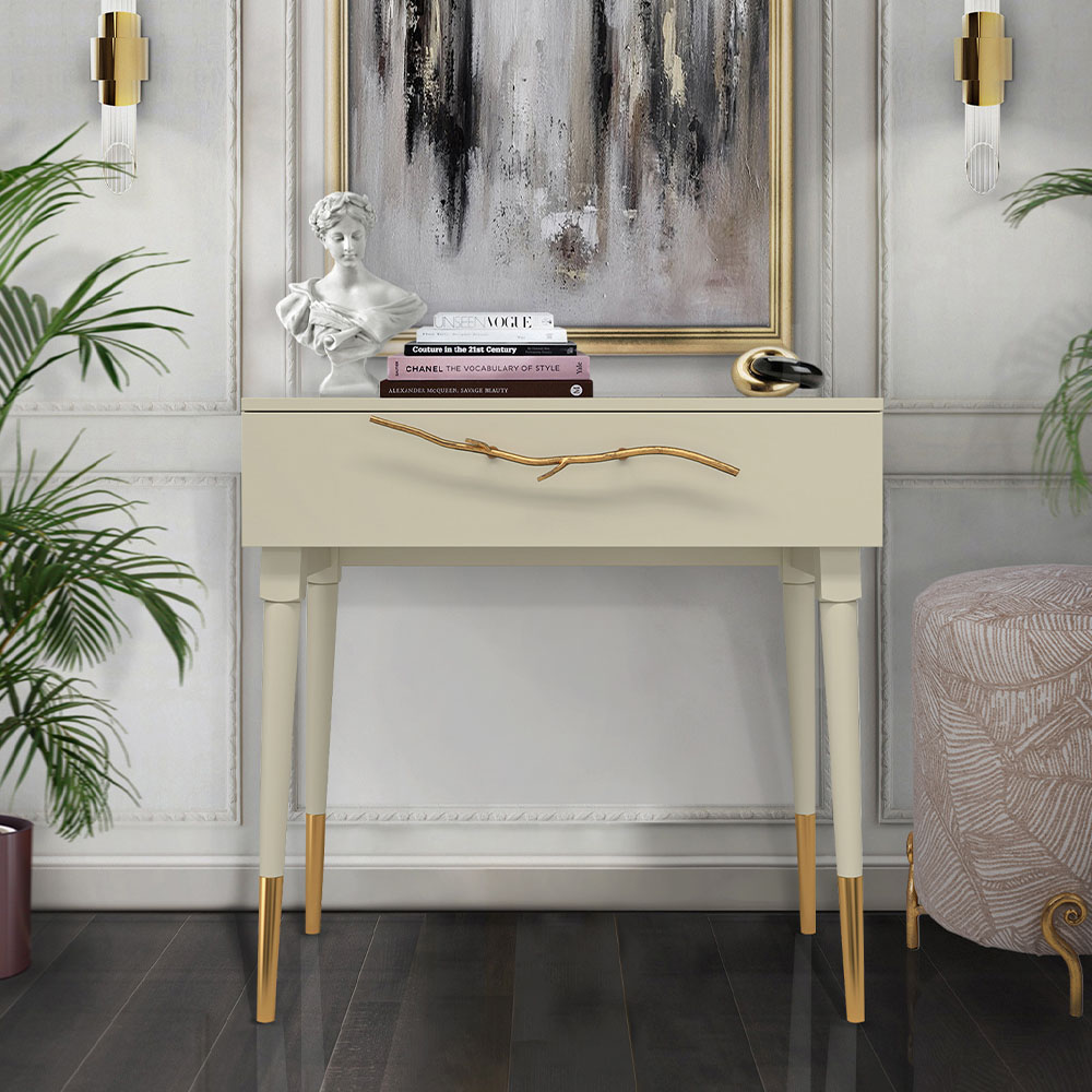 Консольный столик Арт-классик – от российской фабрики мебели BOGACHO, эффектный предмет интерьера, который позволит создать в вашем доме изысканную обстановку. Консоль можно разместить в любой комнате дома, она гармонично будет смотреться в классическом интерьере, лофт, скандинавский стиль Икеа. Эстетика и оригинальный дизайнОбладая оригинальным авторским дизайном, прикроватный столик выделяется оригинальным фасадом. Изюминка изделия – шикарная кованая ручка в форме ветви дерева – ручная работа кузнеца. За изящную ручку удобно открывать и закрывать выдвижной ящик консольного столика. Фасад украшен тропическими листьями из мраморной пудры в технике мастихиновой живописи.Модель мебели в спальню снабжена качественной фурнитурой, которая обеспечивает плавный ход выдвижного механизма на долгие годы. Материалом изготовления изделия служит Мдф. Декоративные элементы отлиты из коелгинского мрамора, отшлифованы, а затем позолочены вручную. ФункциональностьТуалетный стол с ящиком. А это значит, что вы сможете использовать ее как систему хранения вещей и документов, косметики (стол для макияжа, гримерный) или она подойдет как тумба под телевизор. Вместительный ящик незаменим для того, чтобы наполнить его тем, что должно быть всегда под рукой, в легком доступе. Дополнив его зеркалом, вы устроите себе идеальное место для нанесения ежедневного макияжа и ритуалов красоты. Мебель подойдет как тумба в спальню для девочек, тумба под Тв. КомпактностьКосметический стол может быть установлен в любом удобном для вас месте. Трюмо женское не отнимает пространства, напротив, экономит его, выглядит очень красиво, современно и стильно. Используйте его как мебель в спальню, туалетный столик с зеркалом – за ним удобно сидеть, и он не занимает много места, при этом позволит хранить в ящике все нужные принадлежности. Используйте как мебель для гостиной, на нем удобно расположить ноутбук, светильник или декор.Можно купить тумбу для гостиниц, отелей, загородных домов, коттеджей. Она украсит интерьер и станет незаменимой мебелью для полной комплектации как квартир, так и номеров. Практичность и простота уходаКонсоль в прихожую изготовлена из высококачественного Мдф. Покрытие износостойкое, не требует особого ухода. Достаточно протереть поверхность слегка влажной тряпочкой. Ручка выполнена из кованой стали. Единый стильЛюбите, чтобы интерьер был в едином стиле? Присмотритесь к другой мебели фабрики BOGACHO из коллекции Арт, которая будет гармонично сочетаться друг с другом.