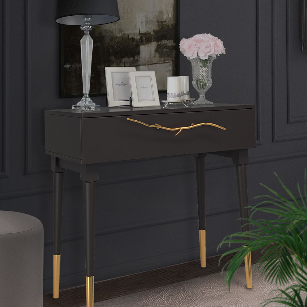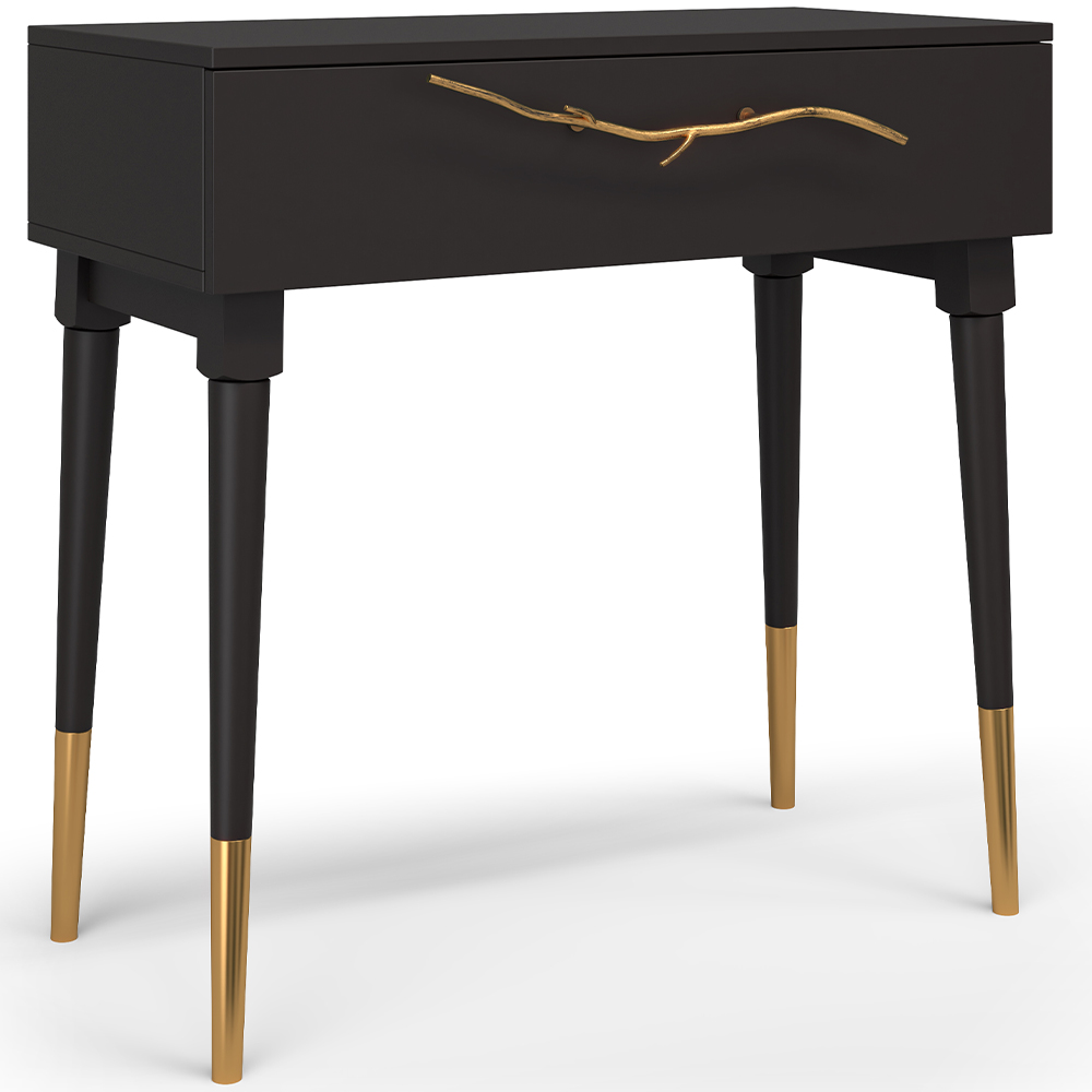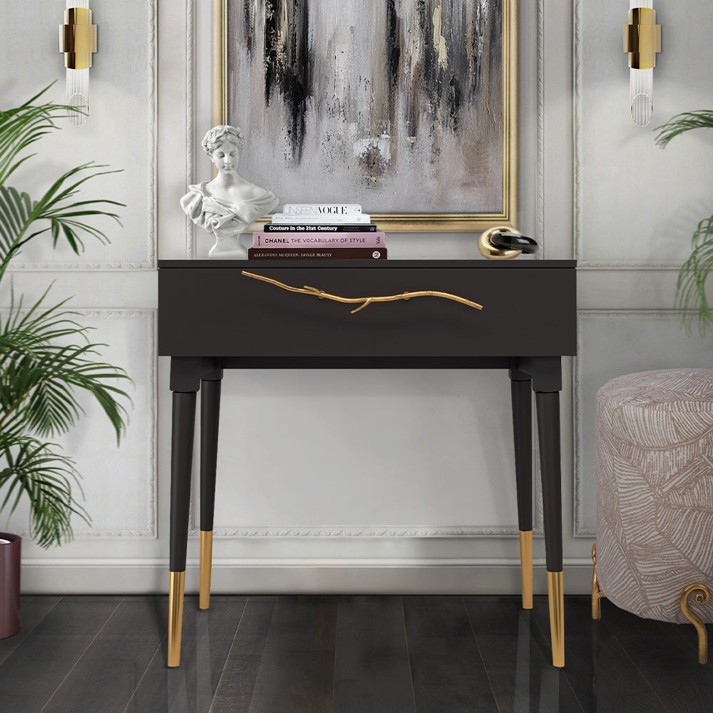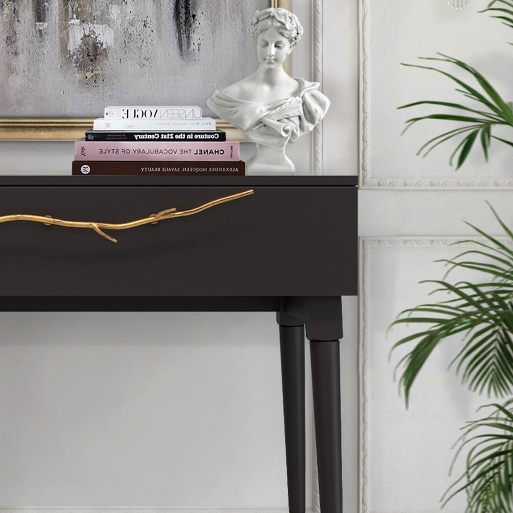 Консольный столик Арт-классик – от российской фабрики мебели BOGACHO, эффектный предмет интерьера, который позволит создать в вашем доме изысканную обстановку. Консоль можно разместить в любой комнате дома, она гармонично будет смотреться в классическом интерьере, лофт, скандинавский стиль Икеа. Эстетика и оригинальный дизайнОбладая оригинальным авторским дизайном, прикроватный столик выделяется оригинальным фасадом. Изюминка изделия – шикарная кованая ручка в форме ветви дерева – ручная работа кузнеца. За изящную ручку удобно открывать и закрывать выдвижной ящик консольного столика. Фасад украшен тропическими листьями из мраморной пудры в технике мастихиновой живописи.Модель мебели в спальню снабжена качественной фурнитурой, которая обеспечивает плавный ход выдвижного механизма на долгие годы. Материалом изготовления изделия служит Мдф. Декоративные элементы отлиты из коелгинского мрамора, отшлифованы, а затем позолочены вручную. ФункциональностьТуалетный стол с ящиком. А это значит, что вы сможете использовать ее как систему хранения вещей и документов, косметики (стол для макияжа, гримерный) или она подойдет как тумба под телевизор. Вместительный ящик незаменим для того, чтобы наполнить его тем, что должно быть всегда под рукой, в легком доступе. Дополнив его зеркалом, вы устроите себе идеальное место для нанесения ежедневного макияжа и ритуалов красоты. Мебель подойдет как тумба в спальню для девочек, тумба под Тв. КомпактностьКосметический стол может быть установлен в любом удобном для вас месте. Трюмо женское не отнимает пространства, напротив, экономит его, выглядит очень красиво, современно и стильно. Используйте его как мебель в спальню, туалетный столик с зеркалом – за ним удобно сидеть, и он не занимает много места, при этом позволит хранить в ящике все нужные принадлежности. Используйте как мебель для гостиной, на нем удобно расположить ноутбук, светильник или декор.Можно купить тумбу для гостиниц, отелей, загородных домов, коттеджей. Она украсит интерьер и станет незаменимой мебелью для полной комплектации как квартир, так и номеров. Практичность и простота уходаКонсоль в прихожую изготовлена из высококачественного Мдф. Покрытие износостойкое, не требует особого ухода. Достаточно протереть поверхность слегка влажной тряпочкой. Ручка выполнена из кованой стали. Единый стильЛюбите, чтобы интерьер был в едином стиле? Присмотритесь к другой мебели фабрики BOGACHO из коллекции Арт, которая будет гармонично сочетаться друг с другом.