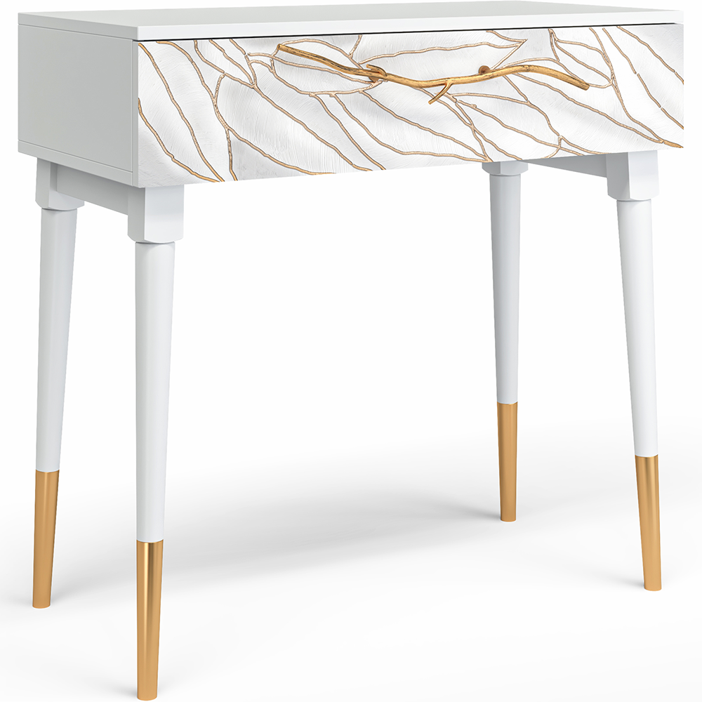 Универсальный консольный стол. Компактные габариты позволяют использовать стол в узком холле или небольшой комнате. Вместительный короб на доводчиках, легкая и бесшумная эксплуатация. Центральным элементом дизайна является кованная ручка в виде ветви дерева. Сочетание минималистичных форм и красота художественной ковки – придают консоли неповторимый шарм и стиль.