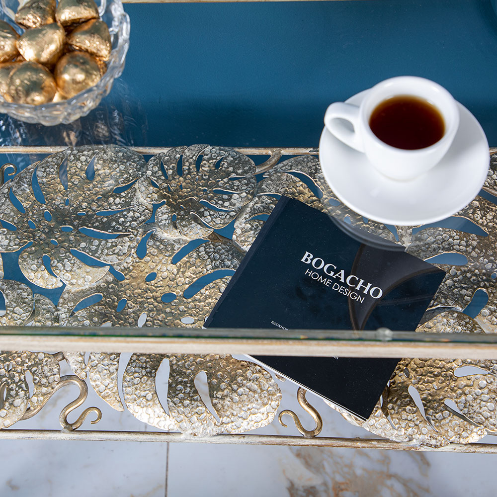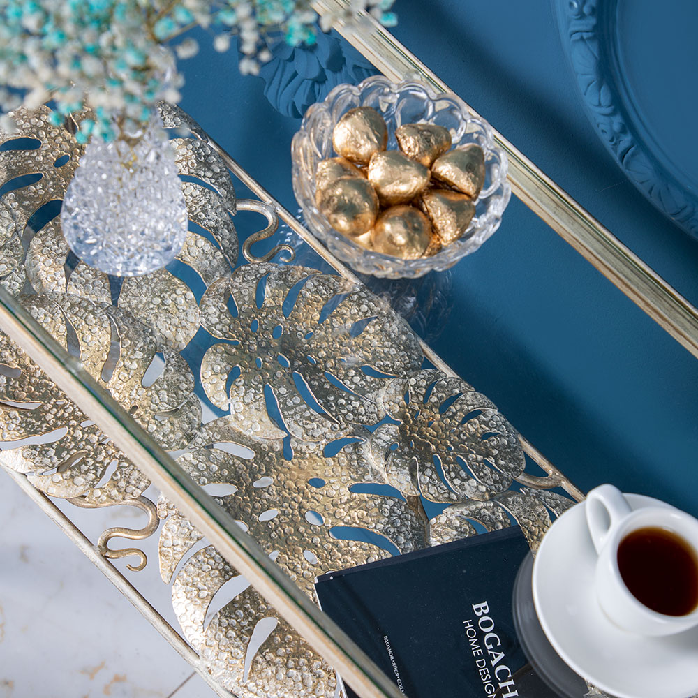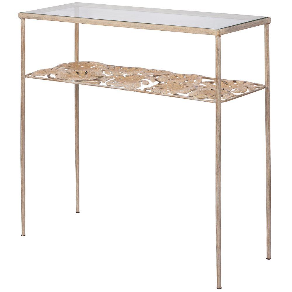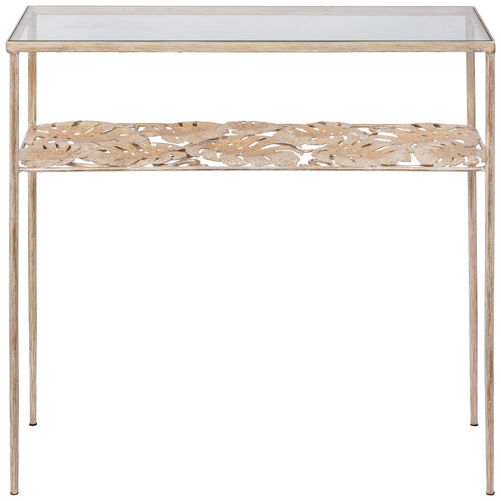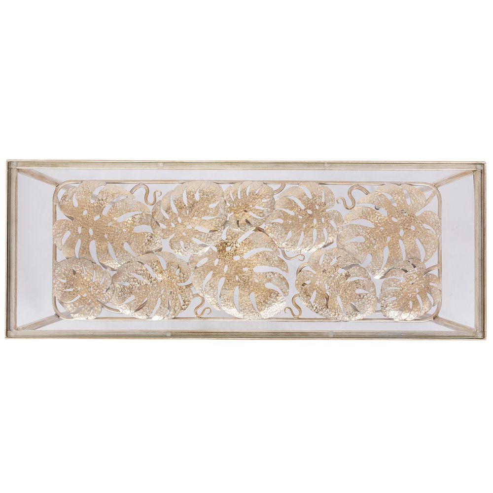 Удивительное сочетание тонкого изящества и трендового стиля в новой модели пристенной консоли "Monstera Deliciosa". Консоль представляет собой прочную основу, которую украшают листья монстеры (кованая сталь), поддерживающую невесомую столешницу (стекло). Получается поистине необычная композиция, которой хочется любоваться. Этот стол-консоль представлен в трех цветах: бронза / золото / серебро.В интерьере такой декор выгодно дополнит современный стиль.