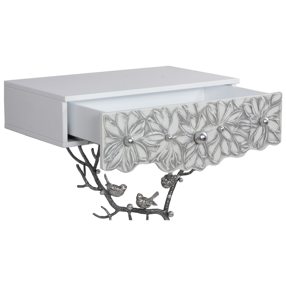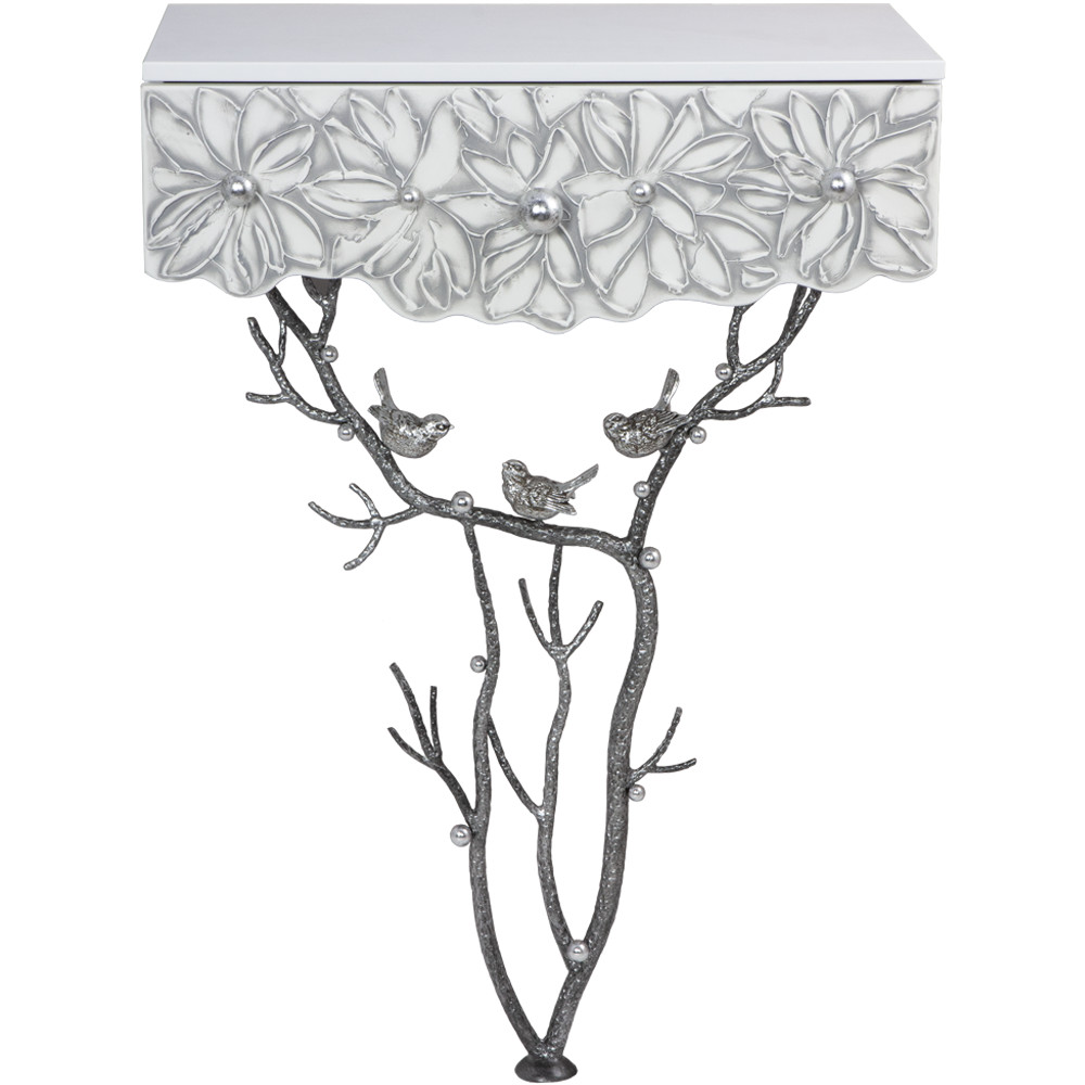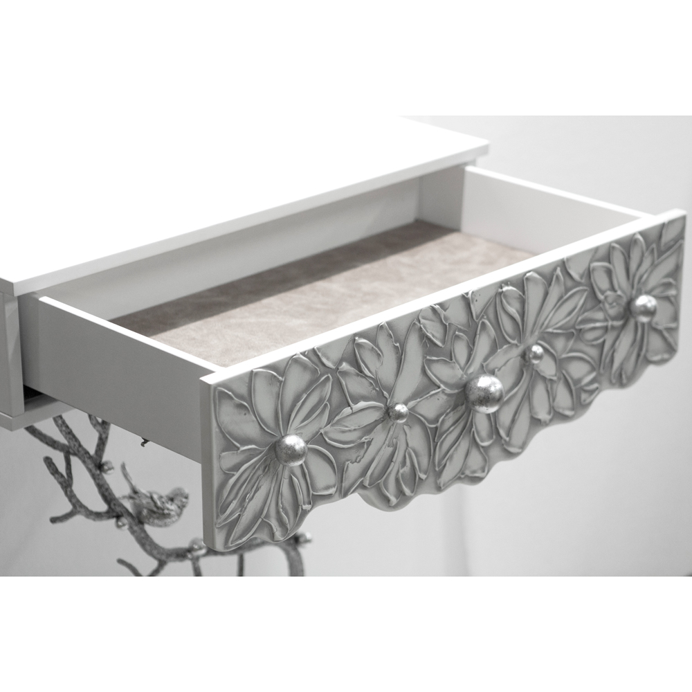 Вестники любвиФасад консоли украшен прекрасными цветами, которые имеют позитивную и жизнеутверждающую символику. С ними ассоциируются самые замечательные слова: нежность, очарование, радость, вдохновение, мир, любовь. А поющие птицы в основании являются символом счастья, свободы, возрождения. Это надежда на то, что все проблемы останутся позади, и впереди нас ждет мир, полный добра, радости, благополучия и света, мир, где нас будут окружать только любящие нас люди.