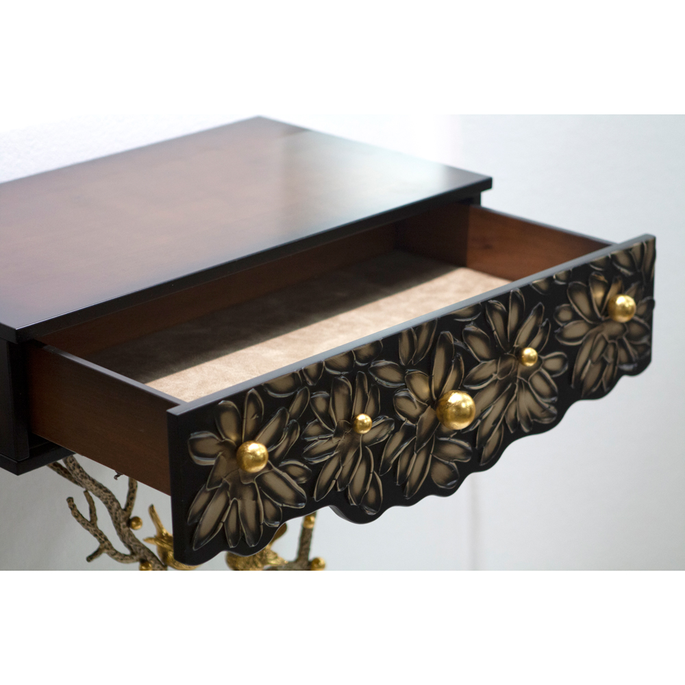 Вестники любвиФасад консоли украшен прекрасными цветами, которые имеют позитивную и жизнеутверждающую символику. С ними ассоциируются самые замечательные слова: нежность, очарование, радость, вдохновение, мир, любовь. А поющие птицы в основании являются символом счастья, свободы, возрождения. Это надежда на то, что все проблемы останутся позади, и впереди нас ждет мир, полный добра, радости, благополучия и света, мир, где нас будут окружать только любящие нас люди.