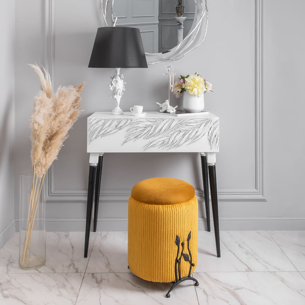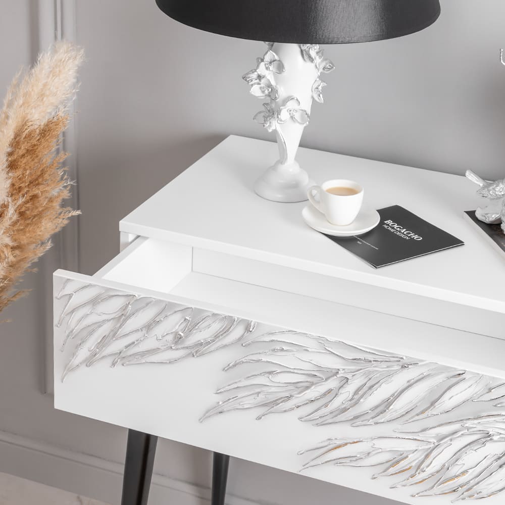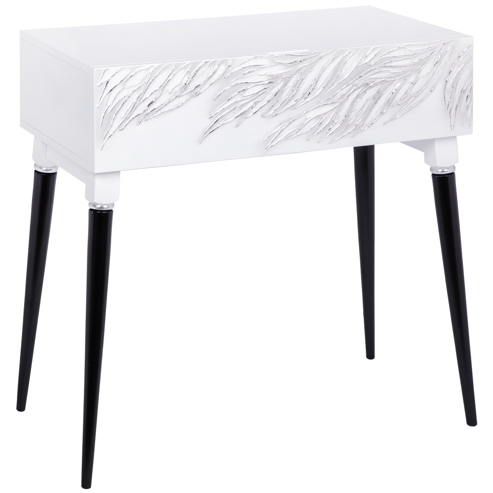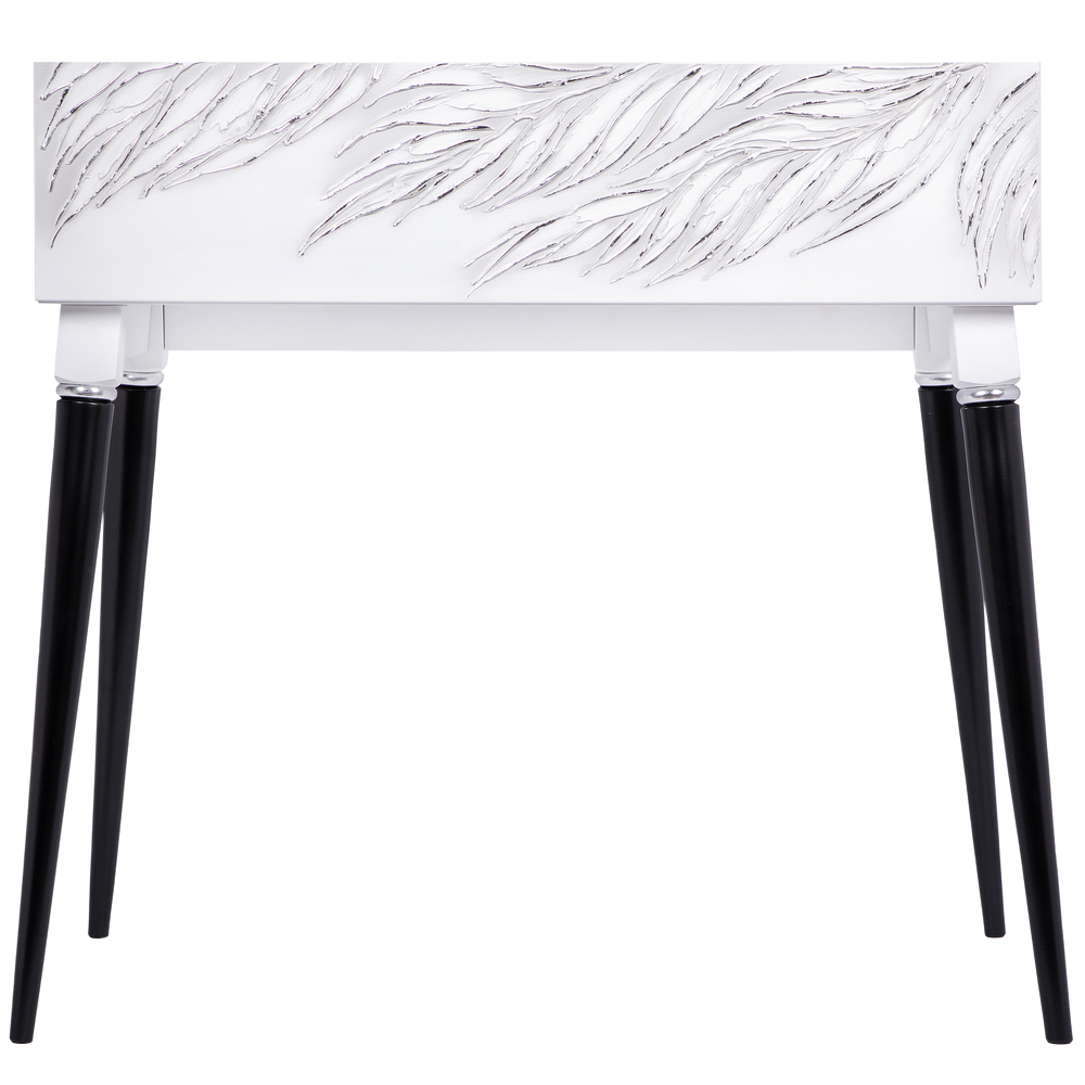 Консоль из МДФ с высокими ножками. Консоль совершенно нового формата из коллекции Тропик позволяет преобразить дизайн и заполнить пространство природным шармом. Пристенный стол Тропик - это гармония в каждой детали. Конические ножки прочно держат классическую форму изделия и добавляют изысканности интерьеру вашего дома. Консоль изготавливается из МДФ. Декоративные элементы выполняются в технике мастихиновой живописи из натурального коелгинского мрамора мелкой фракции. Изделие приходит в собранном виде за исключением ножек.