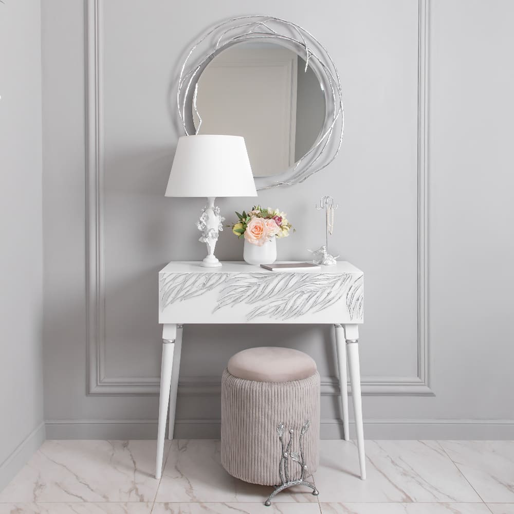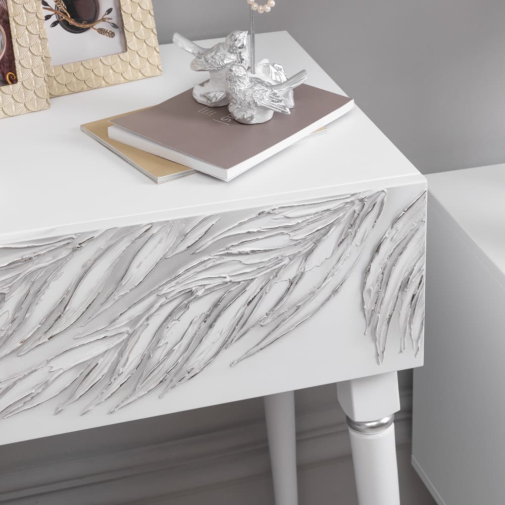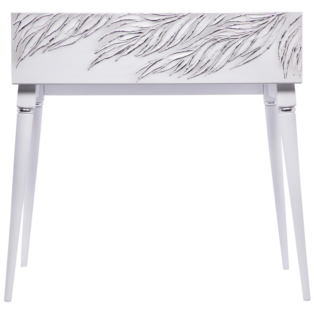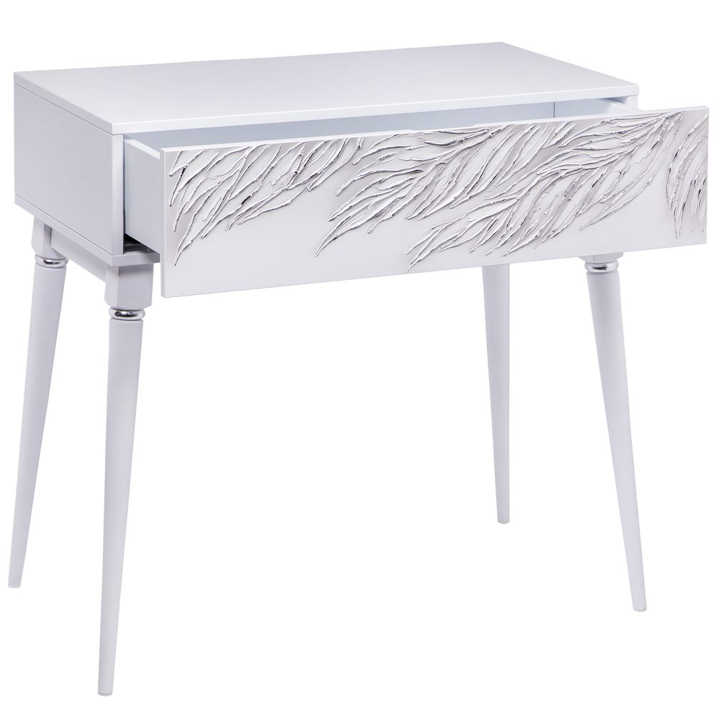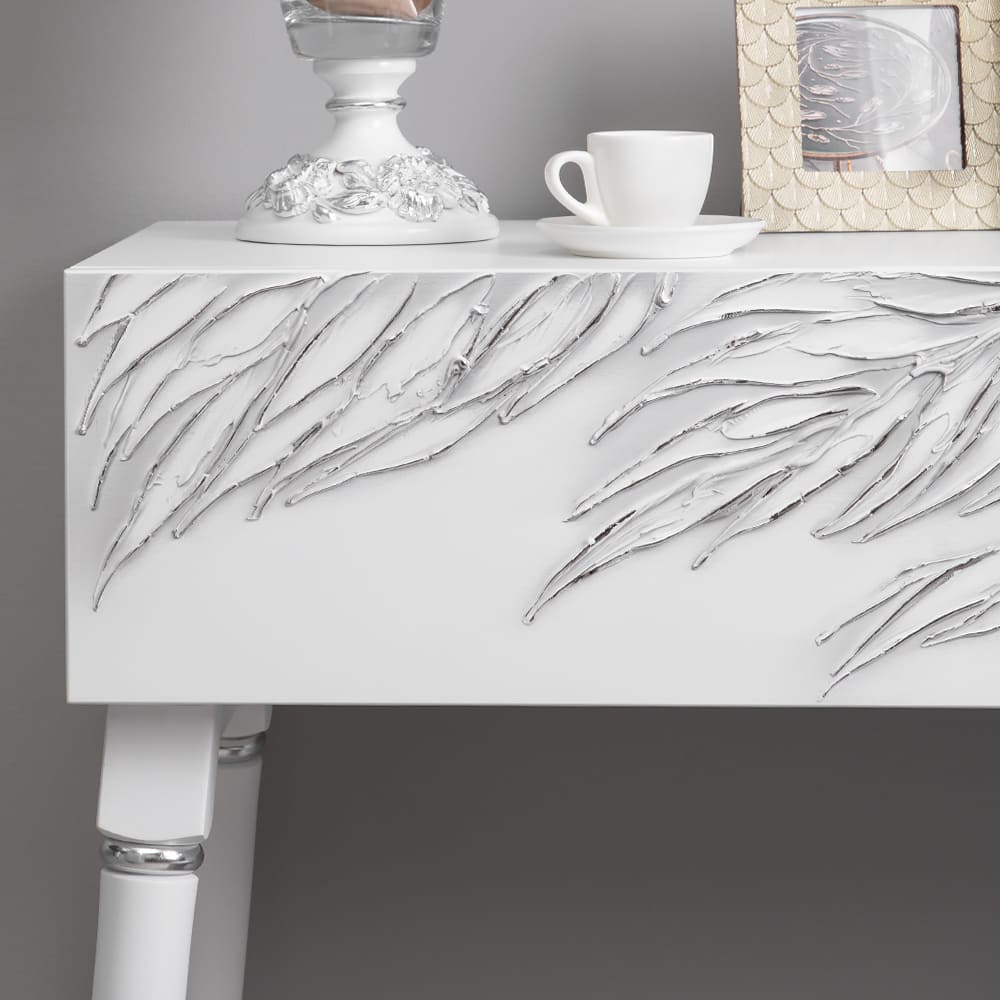 Консоль из МДФ с высокими ножками. Консоль совершенно нового формата из коллекции Тропик позволяет преобразить дизайн и заполнить пространство природным шармом. Пристенный стол Тропик - это гармония в каждой детали. Конические ножки прочно держат классическую форму изделия и добавляют изысканности интерьеру вашего дома. Консоль изготавливается из МДФ. Декоративные элементы выполняются в технике мастихиновой живописи из натурального коелгинского мрамора мелкой фракции. Изделие приходит в собранном виде за исключением ножек.