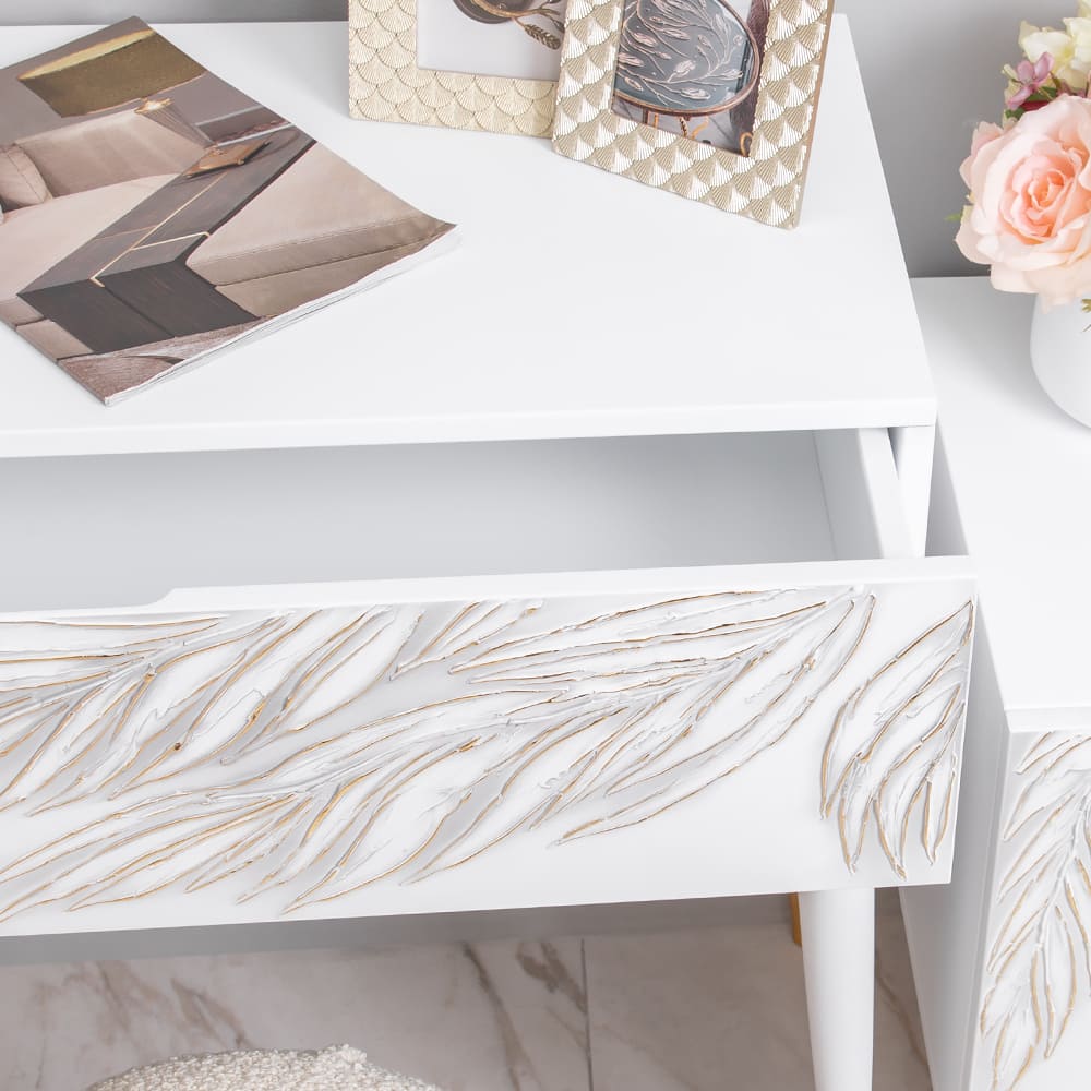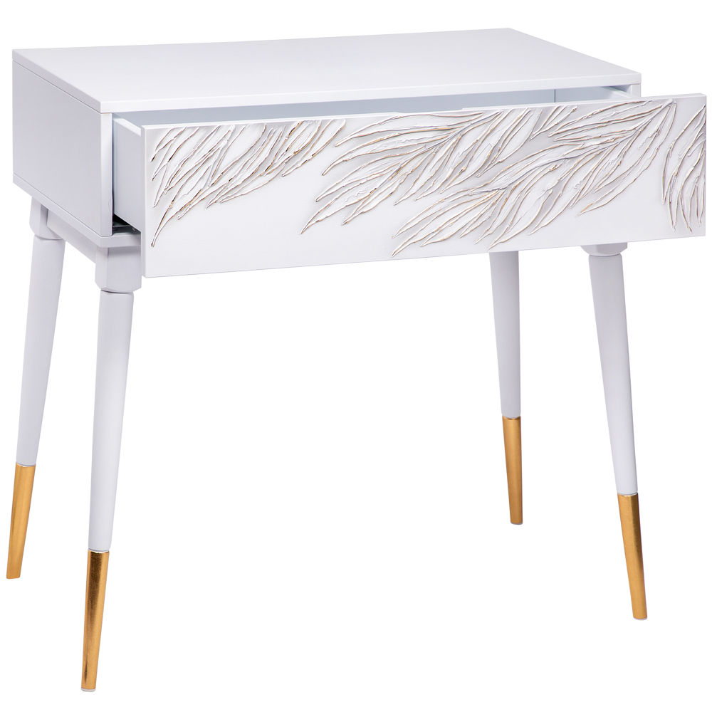 Под столешницей консоли размещен удобный и вместительный ящик для хранения нужных мелочей, которые хотелось бы скрыть от глаз окружающих. Выдвижной механизм снабжен надежными доводчиками.