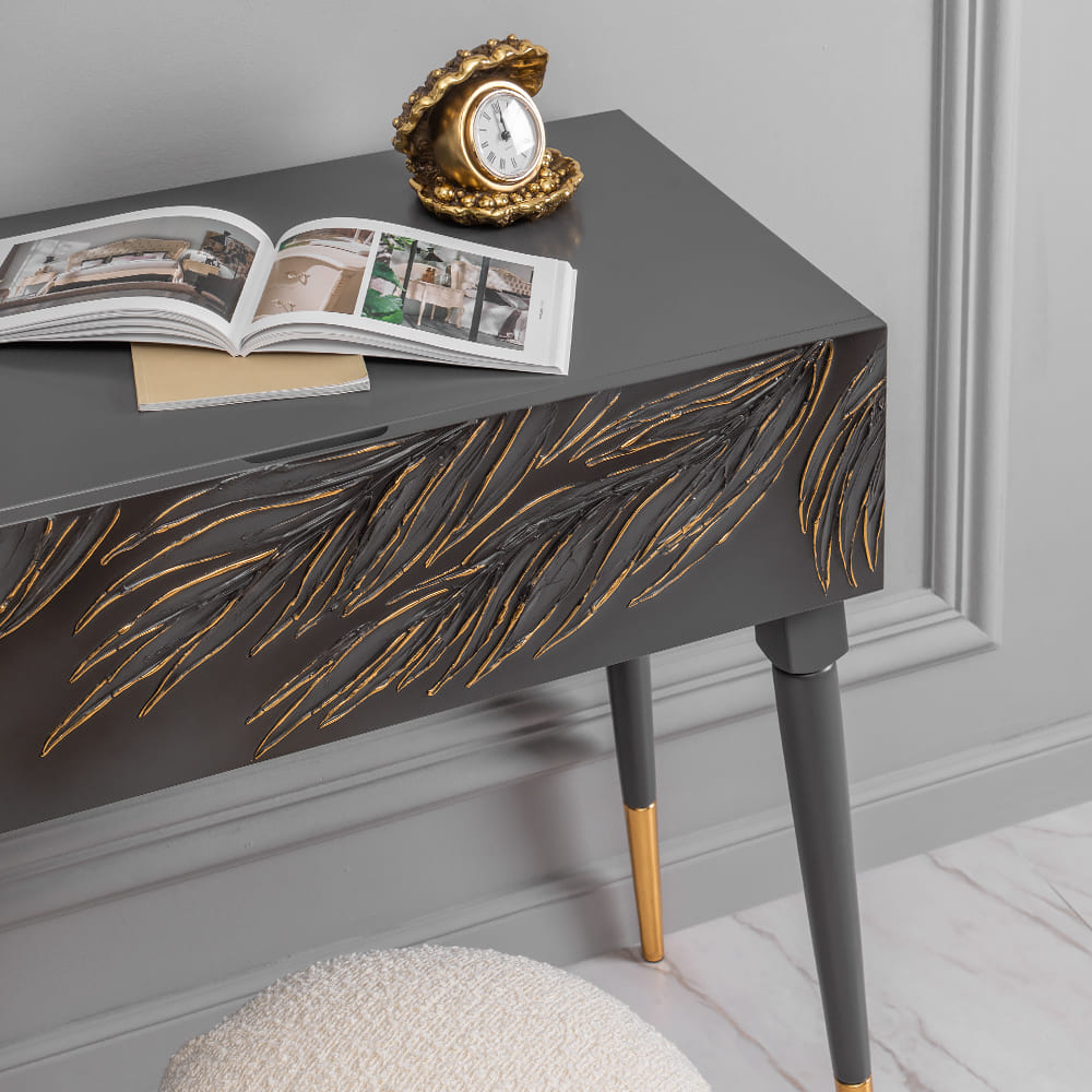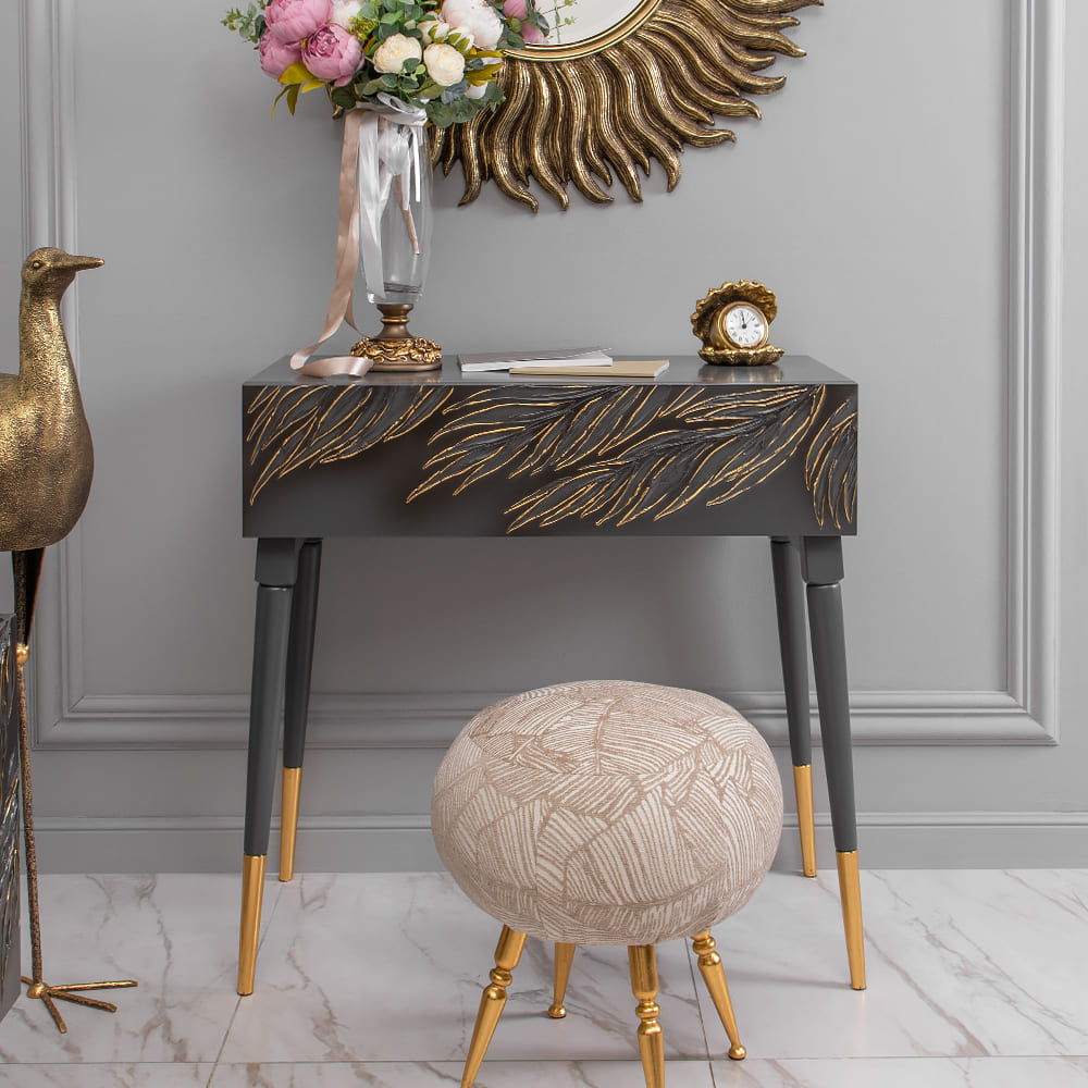 Консоль из МДФ с высокими ножками. Консоль совершенно нового формата из коллекции Тропик позволяет преобразить дизайн и заполнить пространство природным шармом. Пристенный стол Тропик - это гармония в каждой детали. Ножки в стиле Стайл прочно держат классическую форму изделия и добавляют изысканности интерьеру вашего дома. Консоль изготавливается из МДФ. Декоративные элементы выполняются в технике мастихиновой живописи из натурального коелгинского мрамора мелкой фракции. Изделие приходит в собранном виде за исключением ножек.