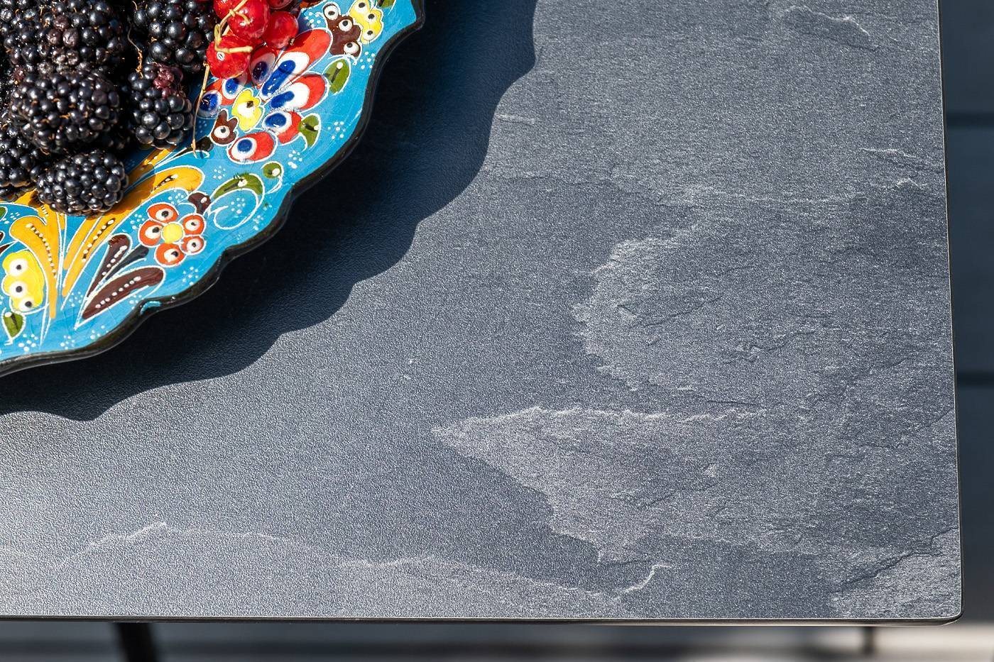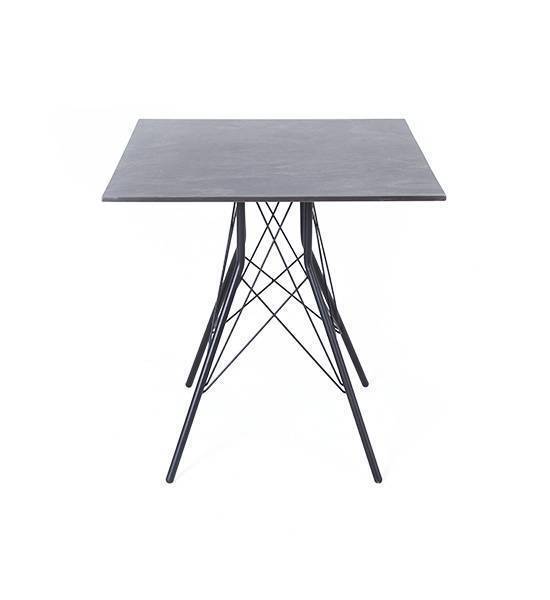 Каркас изготовлен из стали, окрашенной в матовый черный цвет. В качестве столешницы использован высококачественный монолитный компакт-пластика HPL, толщиной 12 мм. Цвет поверхности – «серый гранит».