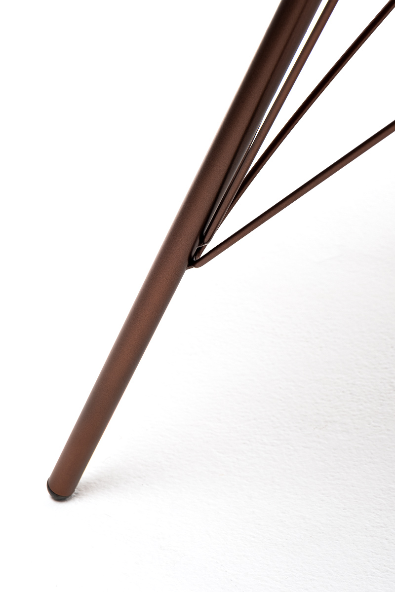 Каркас изготовлен из стали, окрашенной в матовый медный цвет. В качестве столешницы использован высококачественный монолитный компакт-пластика HPL, толщиной 12 мм. Цвет поверхности – «дуб».