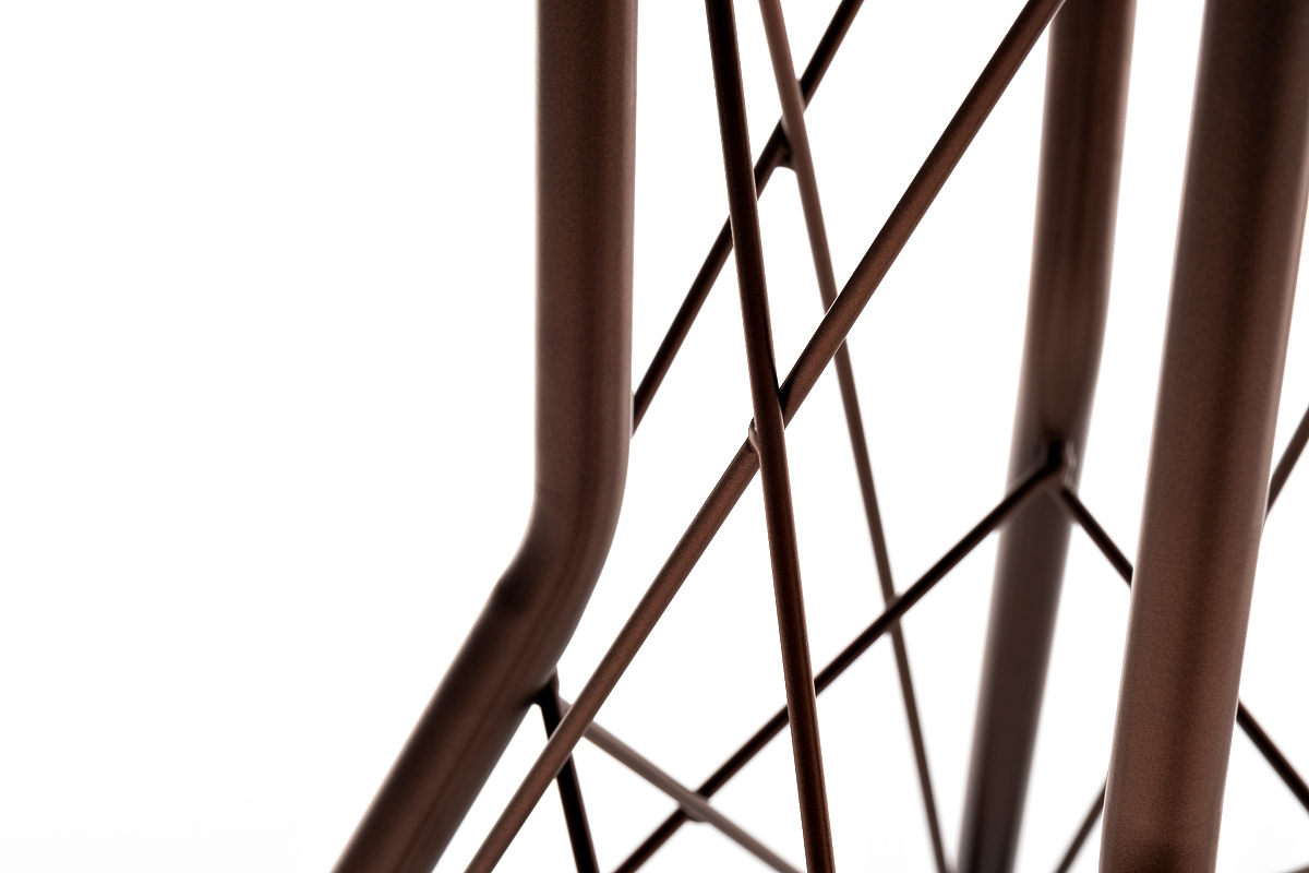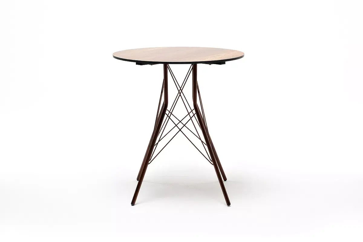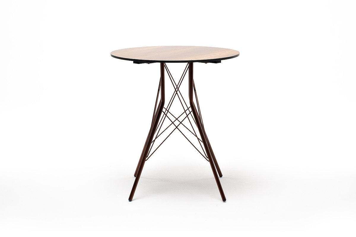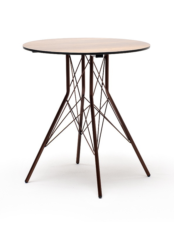 Каркас изготовлен из стали, окрашенной в матовый медный цвет. В качестве столешницы использован высококачественный монолитный компакт-пластика HPL, толщиной 12 мм. Цвет поверхности – «дуб».
