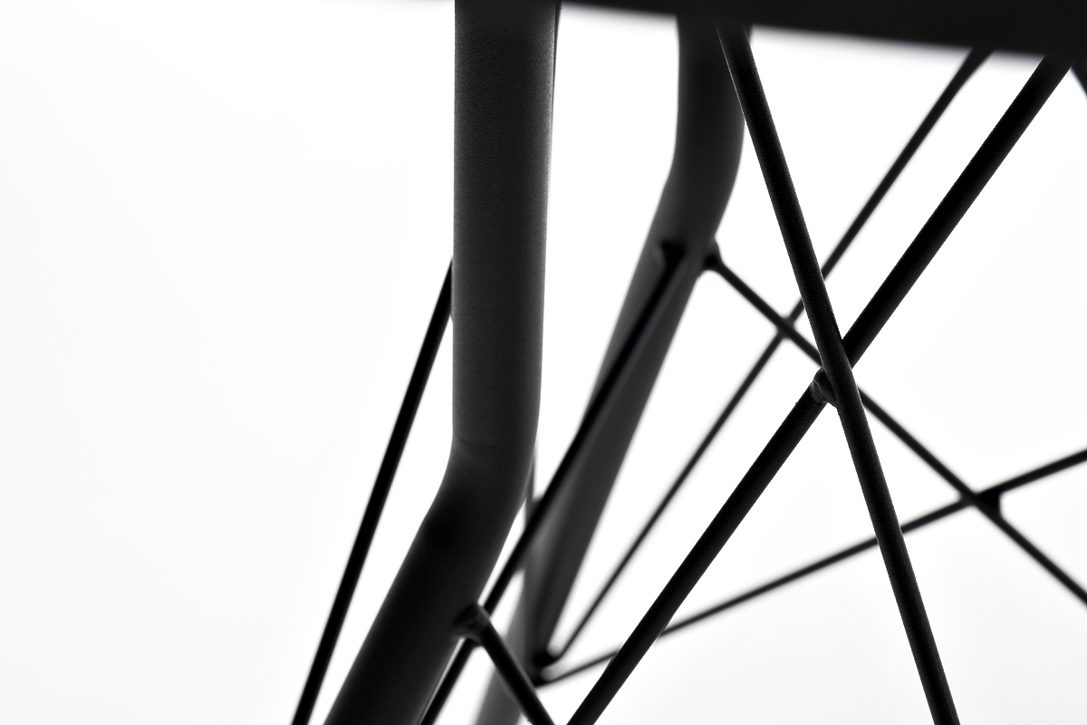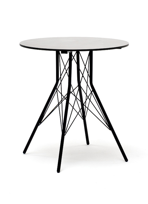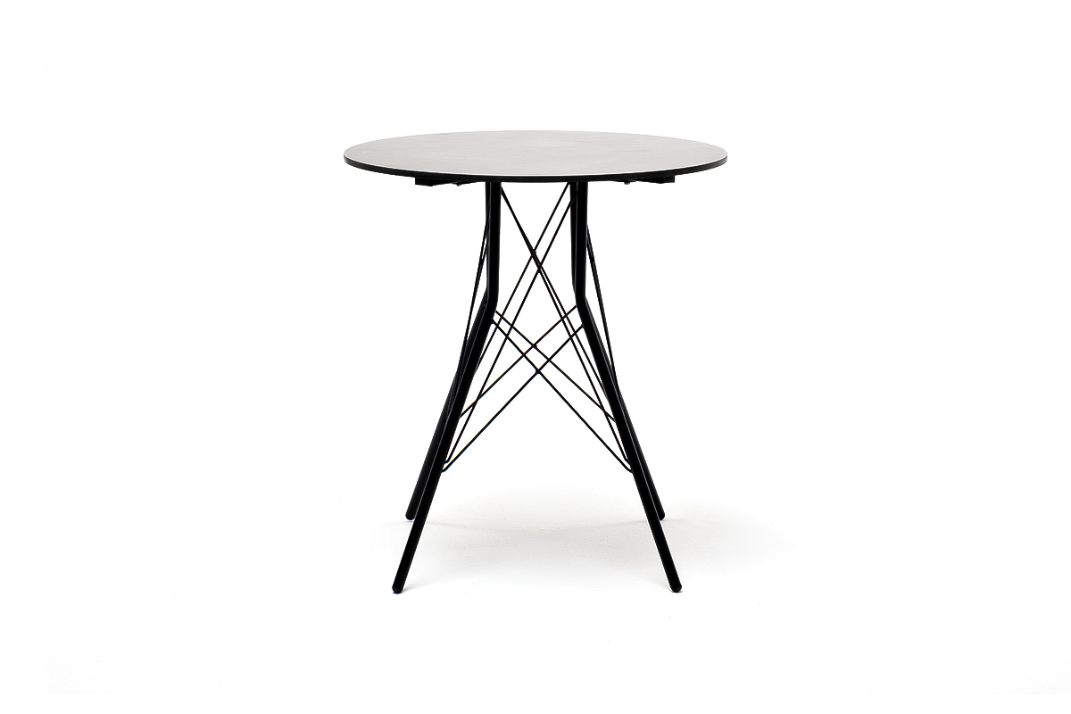 Каркас изготовлен из стали, окрашенной в матовый черный цвет. В качестве столешницы использован высококачественный монолитный компакт-пластика HPL, толщиной 12 мм. Цвет поверхности – «серый гранит».