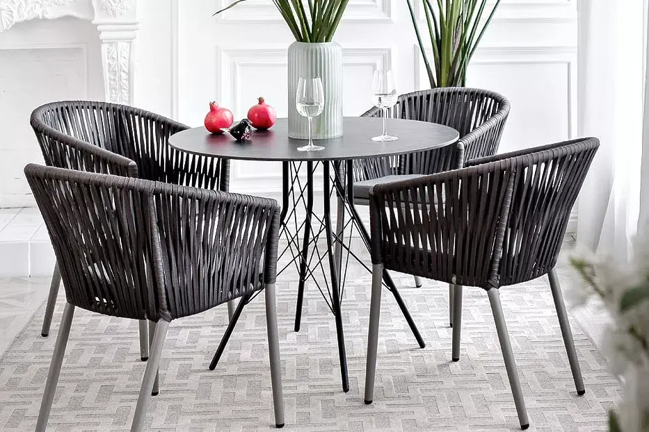 Для обустройства обеденной группы стол можно сочетать с дизайнерскими стульями и креслами из нашего ассортимента.