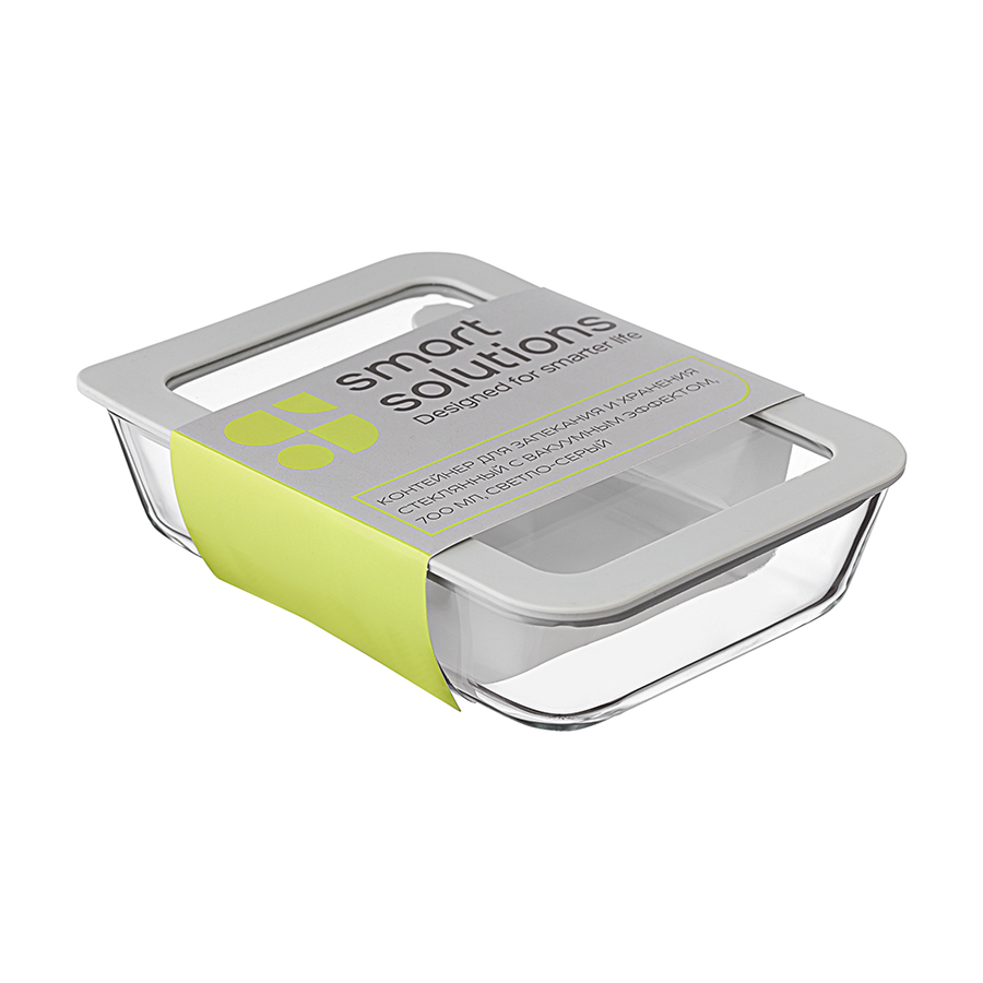 Контейнер для запекания и хранения с вакуумным эффектом Vacuum Glass, 700 мл, светло-серый
