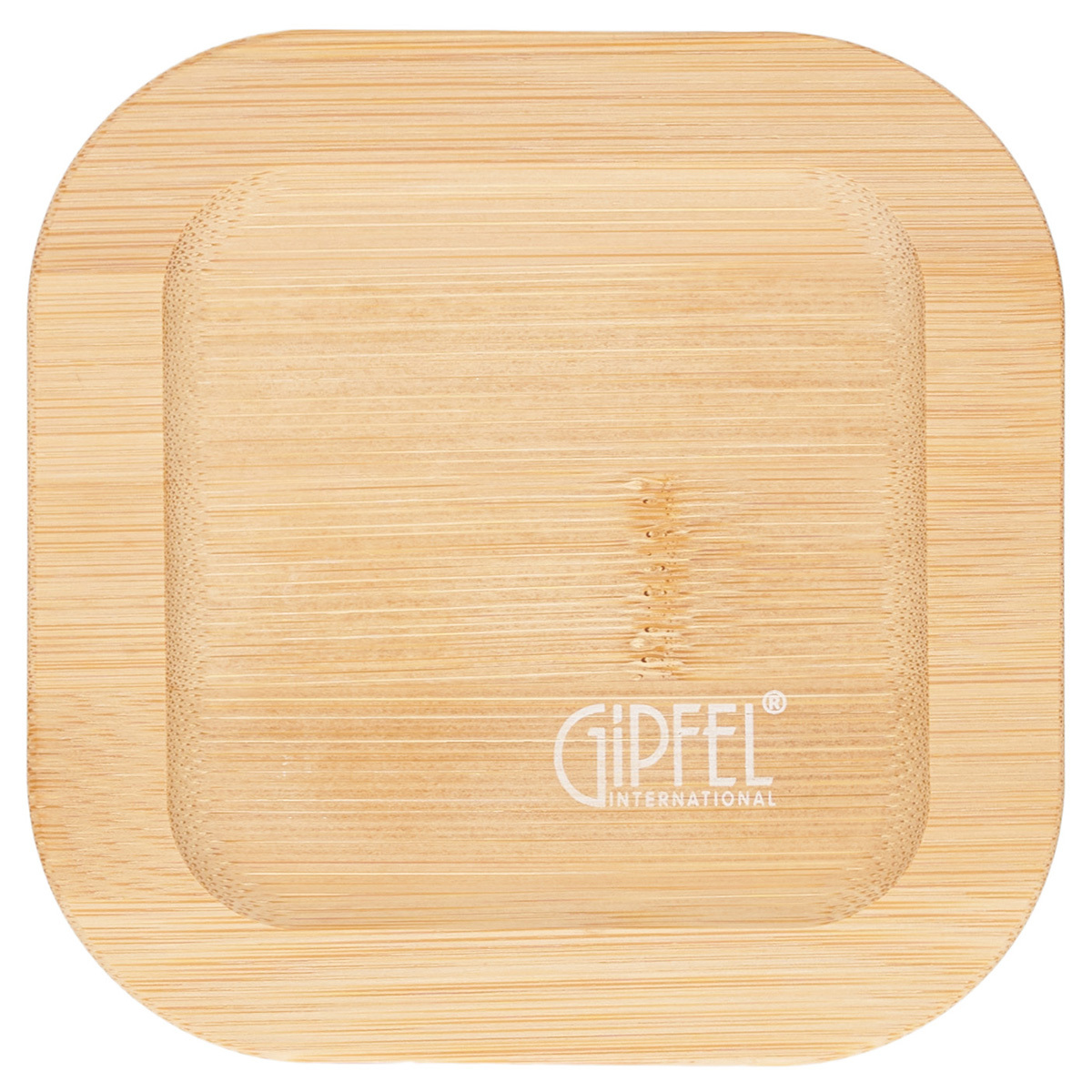 Контейнер стеклянный Gipfel Stor 51961 квадратной формы размером 11х11 см, высотой 5,5 см. Объем 310 мл. В комплекте крышка из бамбука. Изготовлен из жаропрочного боросиликатного стекла.