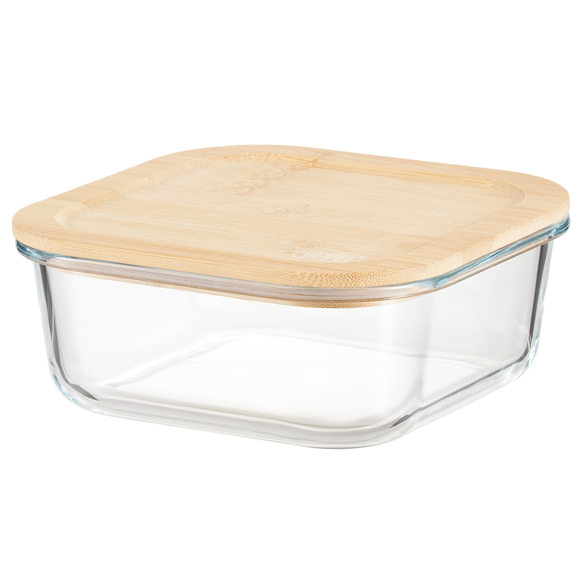 Контейнер стеклянный Gipfel Stor 51964 квадратной формы размером 17,5х17,5 см, высотой 7 см. Объем 1200 мл. В комплекте крышка из бамбука. Изготовлен из жаропрочного боросиликатного стекла.