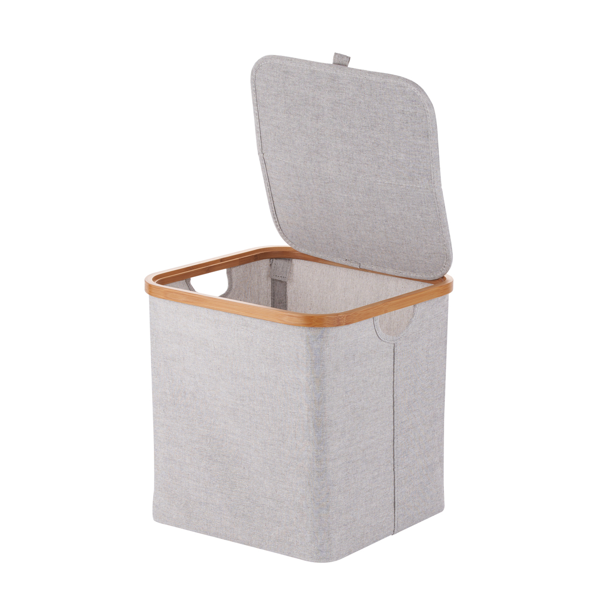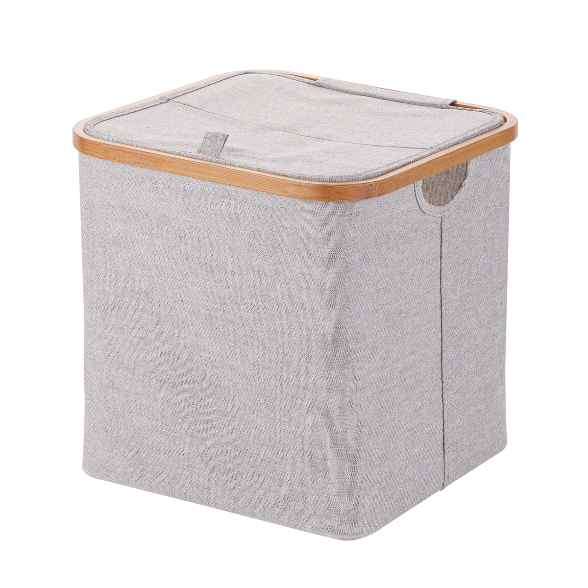 Короб для хранения Gipfel PURE 42183 с крышкой. Короб серого цвета размером 33х33х32см. У короба крышка в верхней части, по периметру обод из бамбука. Материал: бамбук, 76% полиэстер, 24% хлопок.