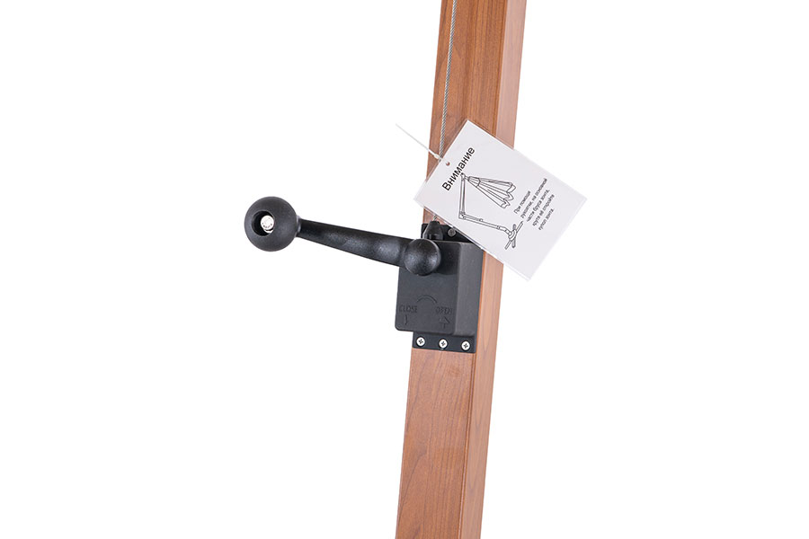 Зонт также оснащен механизмом раскрытия купола с пластиковой ступицей и ручкой с диаметром вращения - 115 мм.