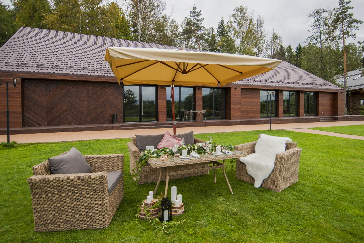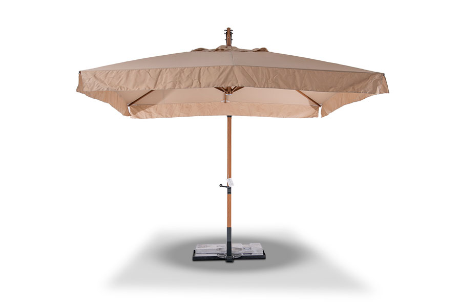 Установка зонта предполагает 2 способа: фиксация с помощью бетонных утяжелителей или цементирование в поверхность предполагаемой зоны отдыха.