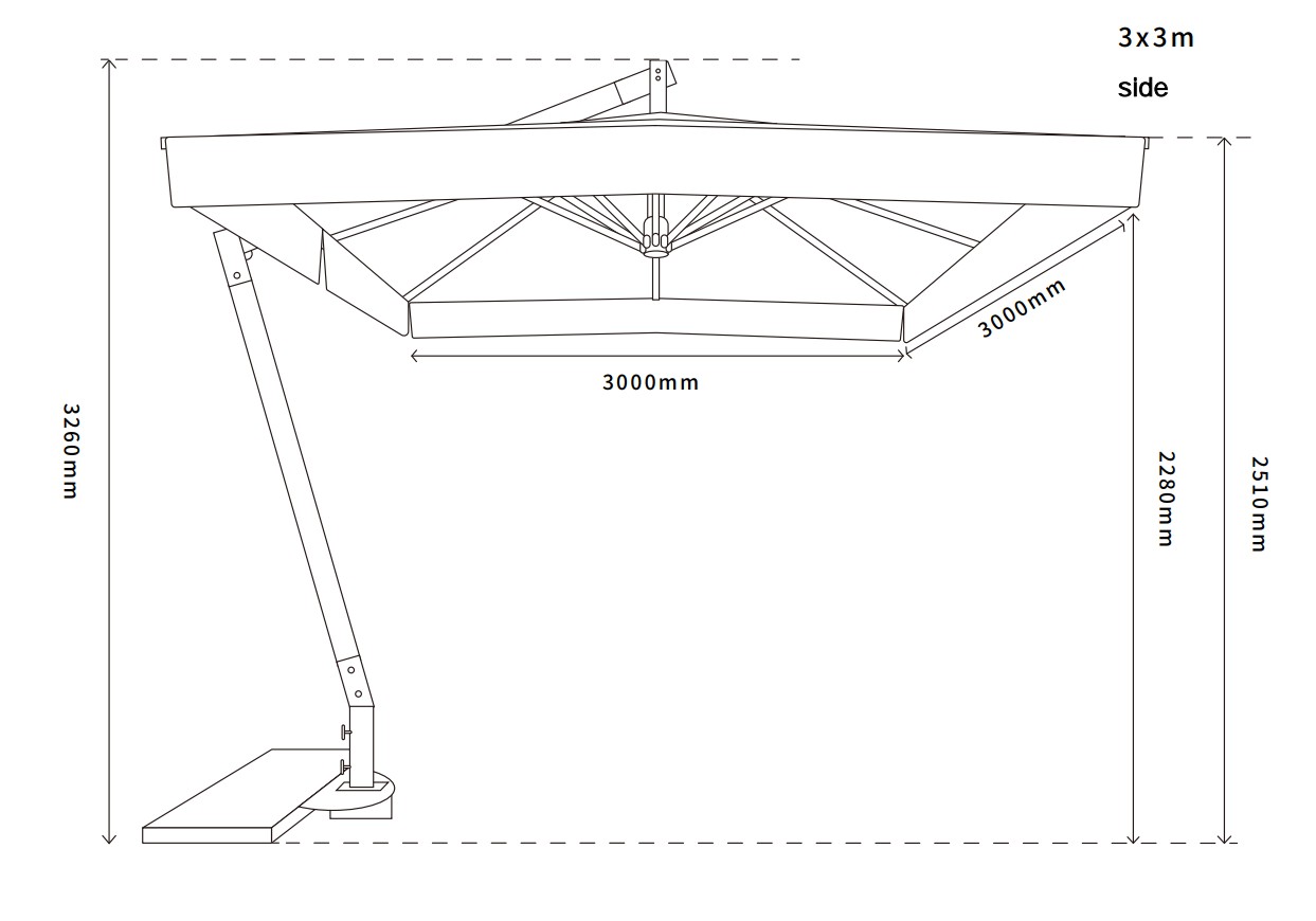 Уличный зонт «Корсика» на боковой алюминиевой опоре с размером купола 3×3 м.
