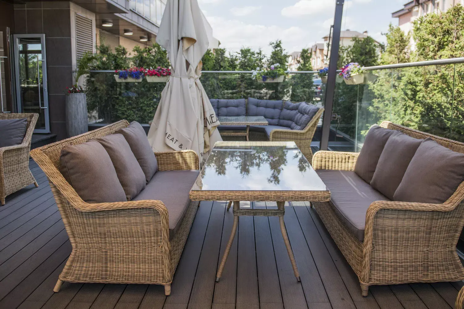 Обеденная группа «Кортадо» рассчитана на 6 персон. Если нужно увеличить число посадочных мест, то дополнительно можно приставить кресла. Для данного комплекта подойдут любые кресла соломенного оттенка.