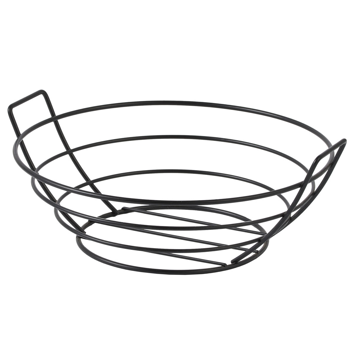 Стильная круглая корзинка для хлеба, покрытая эмалью черного цвета с текстильной вставкой серого цвета, идеально сочетается с современным дизайном кухни.