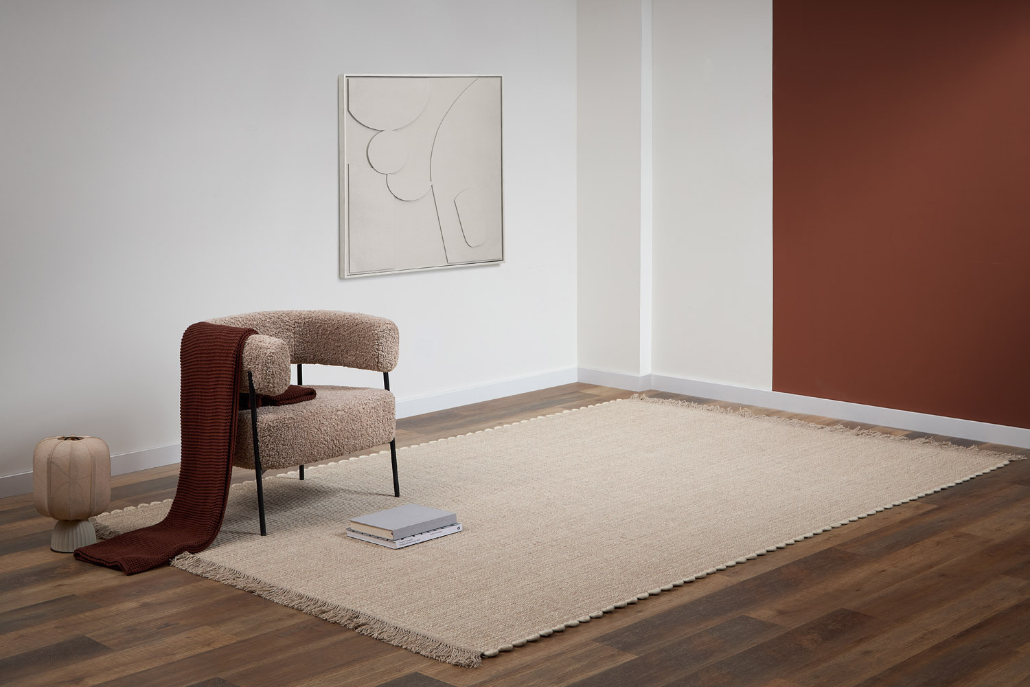 - Лаконичный дизайн и сдержанный графический узор позволяют вписать ковер Badrinath в различные интерьерные стили: сканди, эко, фьюжн, неоклассика и другие.