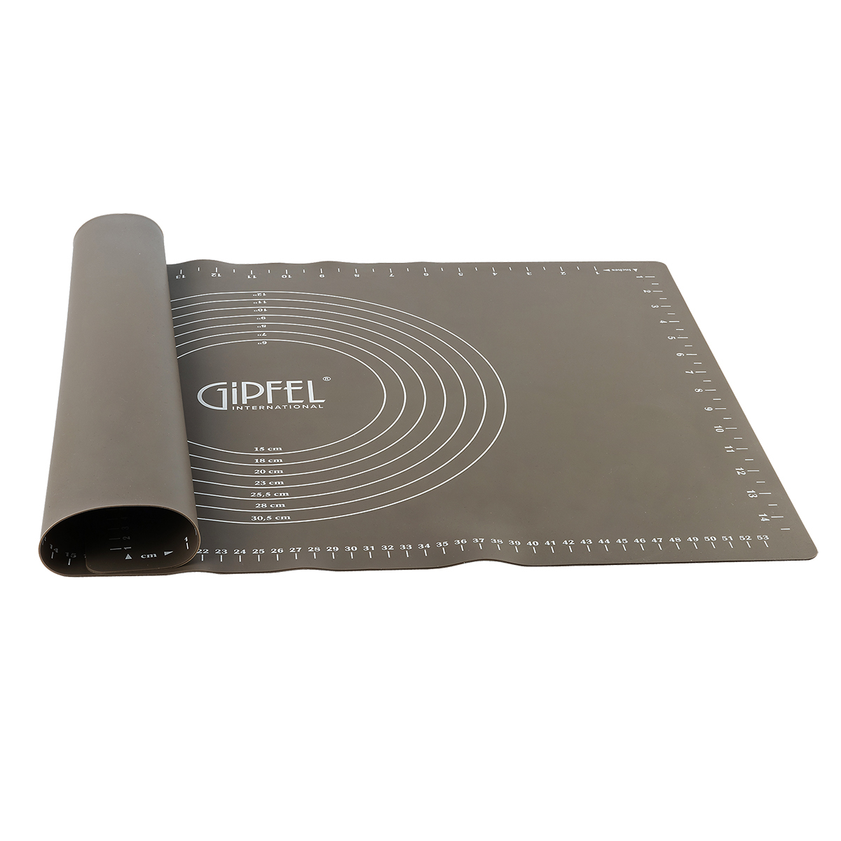 Коврик для выпечки Gipfel ECO 51195. Размер 60х40 см. Изготовлен из силикона бежевого цвета. По четырем сторонам нанесена удобная линейка в сантиметрах. Также имеется разметка для выпечки круглых десертов разного диаметра.